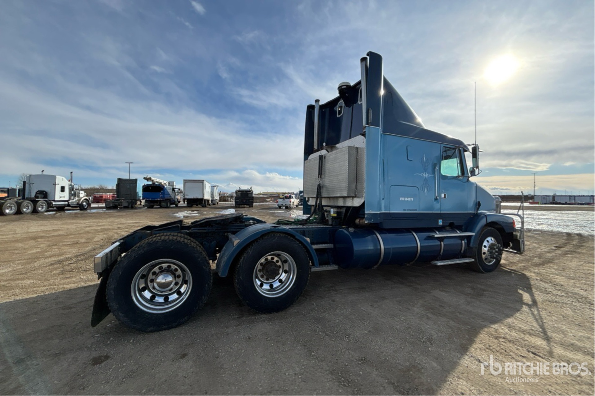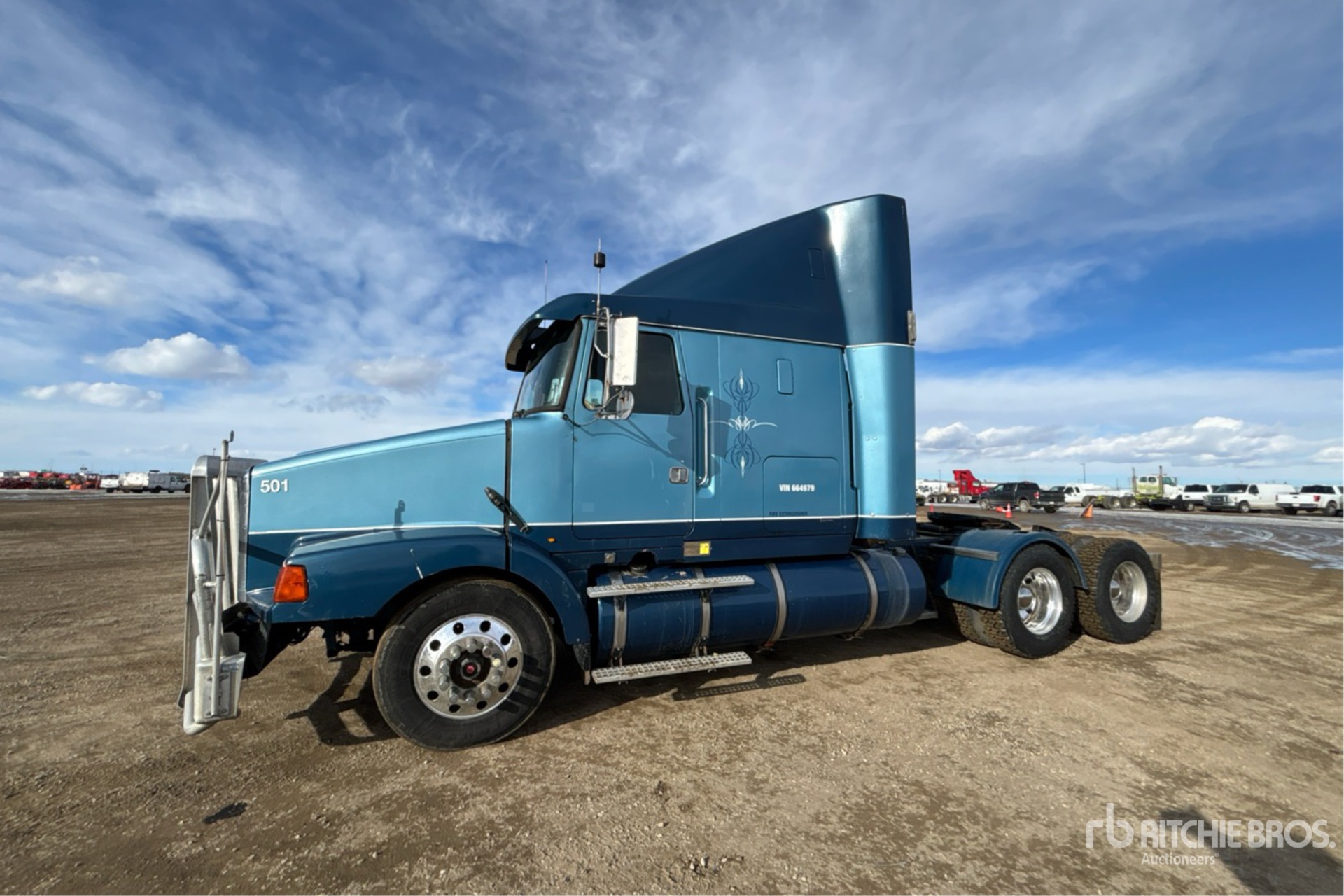 Caterpillar Engine, Eaton Fuller 13-Speed Manual Transmission, Engine Brake, Differential Lock, Integral Sleeper 52 in High Rise Sleeper Cab, Bunk Beds, Bunk Heater, 214 in Wheelbase, Air Suspension, Aluminum Wheels, 295/75R22.5, Air Sliding 5th Wheel, Auto Lube, Dual Fuel Tanks, Headache Rack