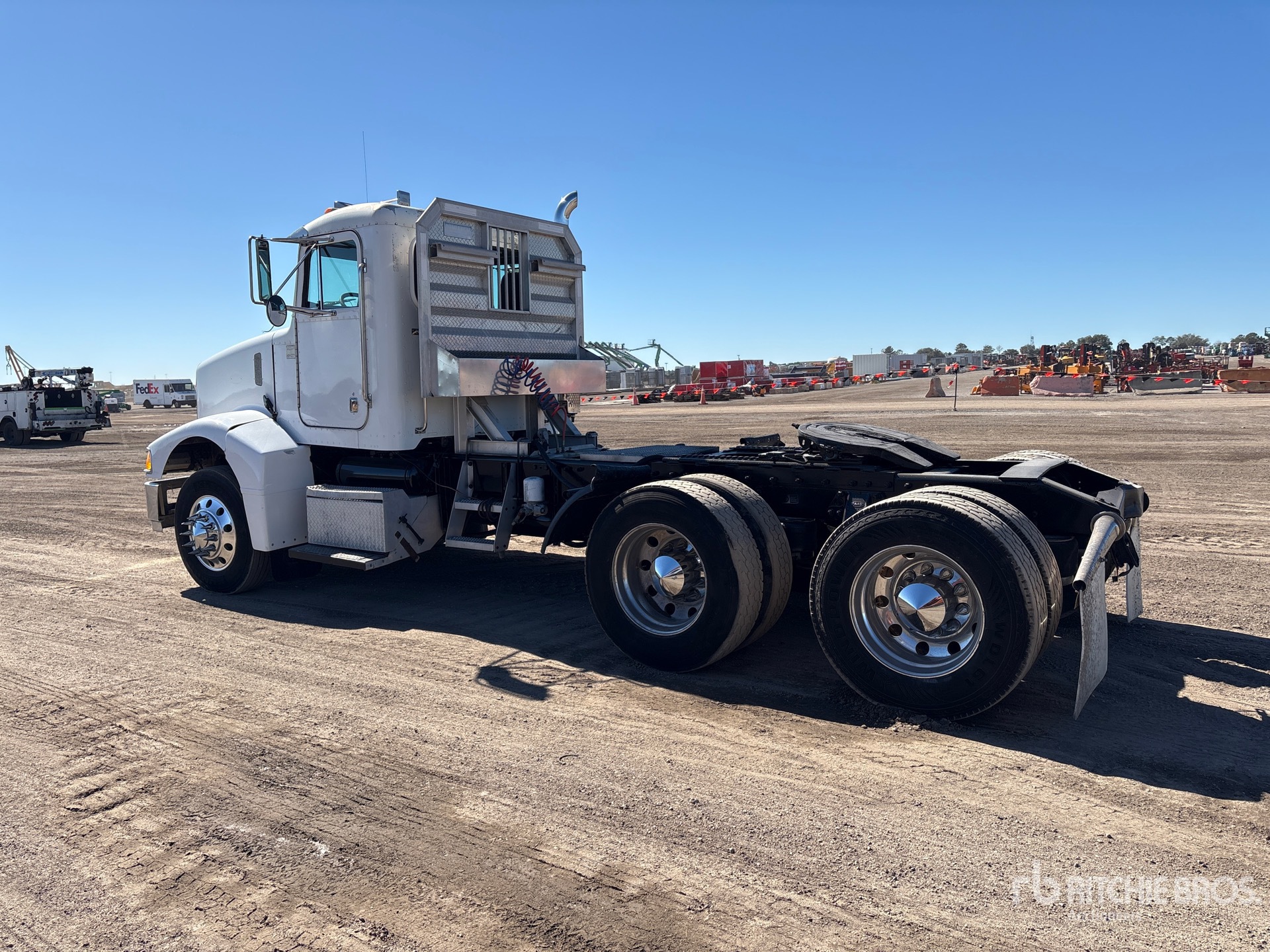 Cat C10 Engine, Eaton Fuller Manual Transmission, 12000 lb Front Axle, 38000 lb Rears, 50000 lb GVWR, 195 in Wheelbase, Air Suspension, Aluminum Wheels, 295/75R22.5, Wet Kit, Air Sliding 5th Wheel, Headache Rack