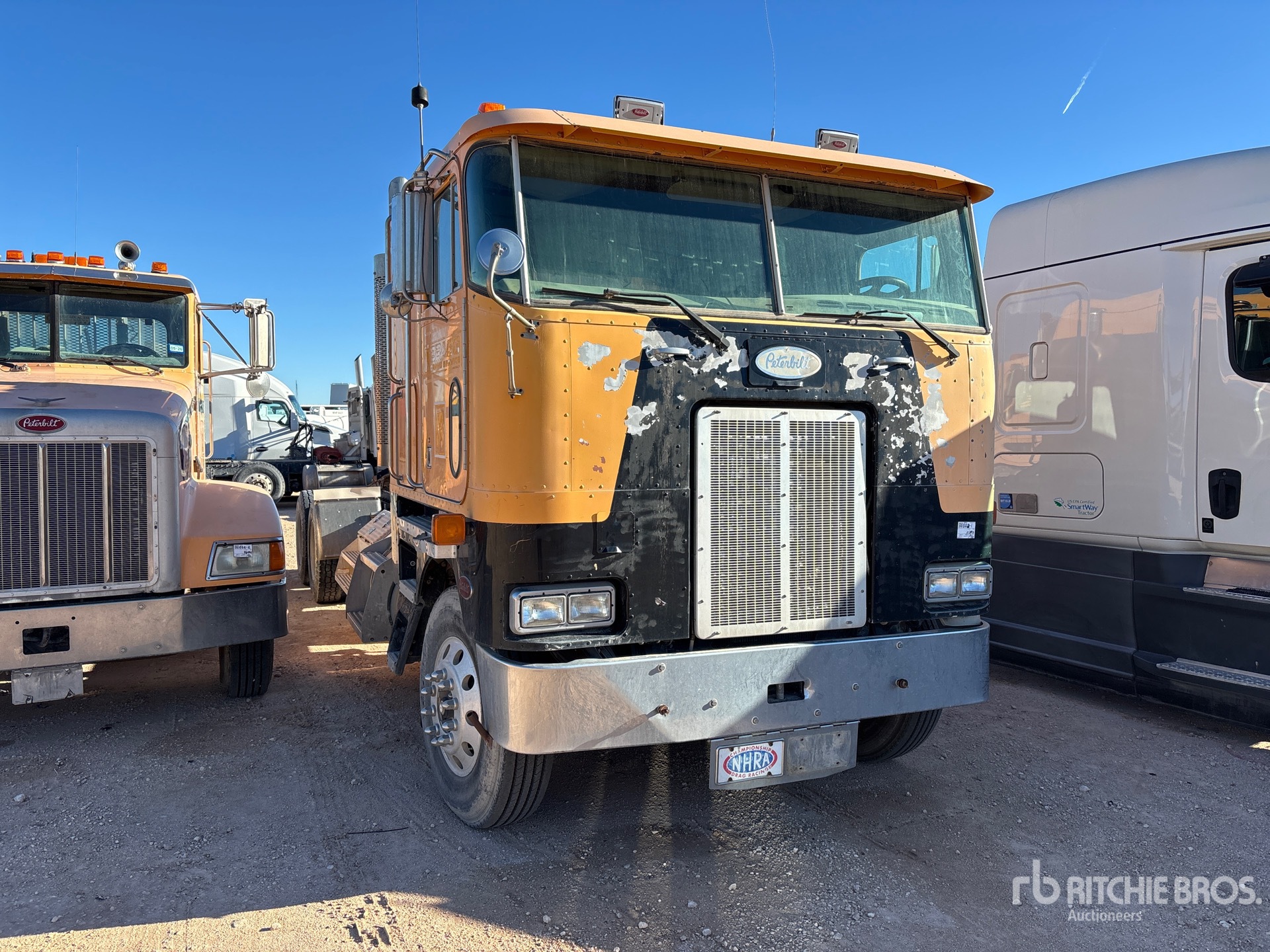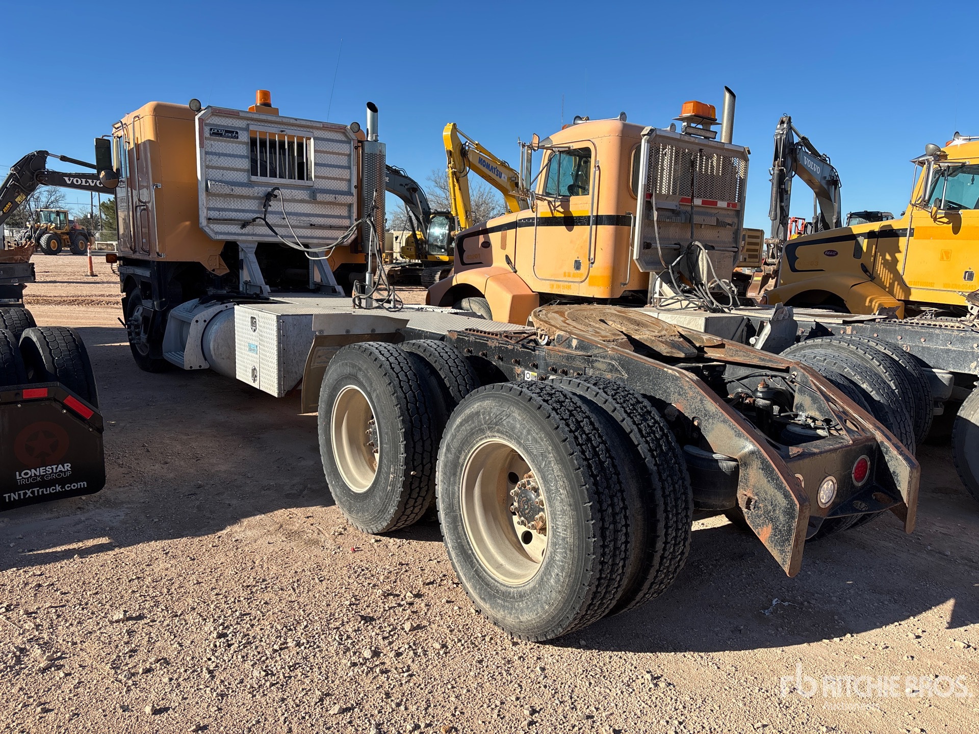 Cummins N14 Engine, Manual Transmission, 12000 lb Front Axle, 34000 lb Rears, 48000 lb GVWR, Engine Brake, 44 in Sleeper Cab, 254 in Wheelbase, Air Suspension, Aluminum Wheels, 11R22.5, Air Sliding 5th Wheel, Dual Fuel Tanks, Headache Rack, Lowboy Ramps