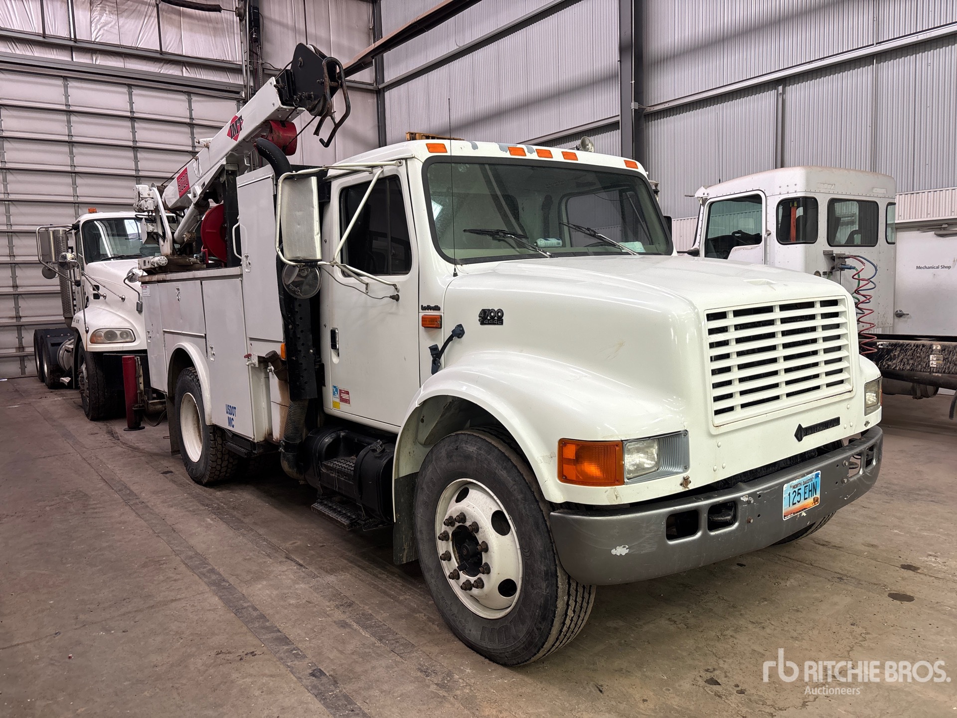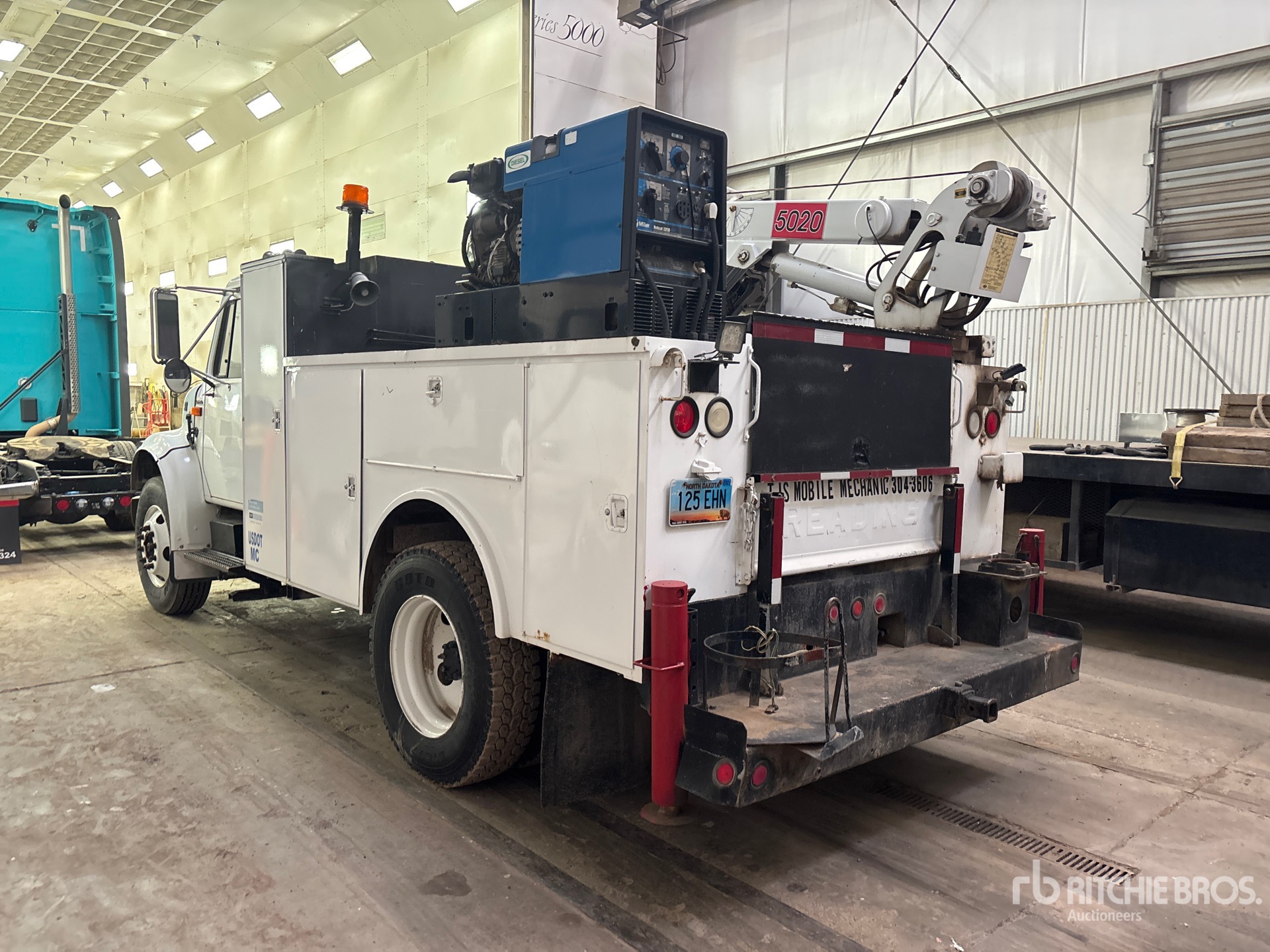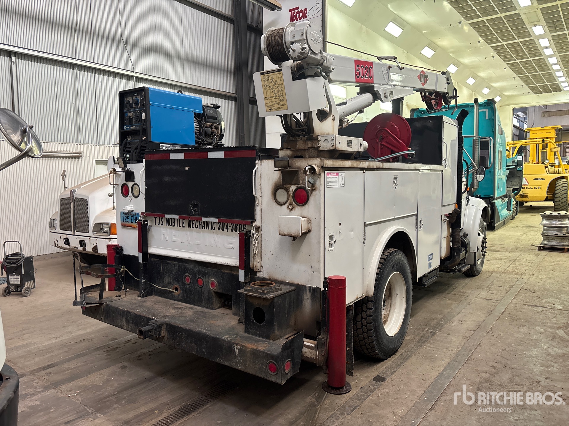 International 6 Cylinder Diesel Engine, 2002 US EPA Label, 1867 Engine hrs, Eaton Fuller 9-Speed Manual Transmission, 295/75R22.5, Spring Suspension, 152 in Wheelbase, Reading 11 ft Body, Hydraulic Stabilizers, 2002 Imt 8600 lb 2 Section Hydraulic Crane, Wired Remote Control, Miller 225 A Diesel Welder
