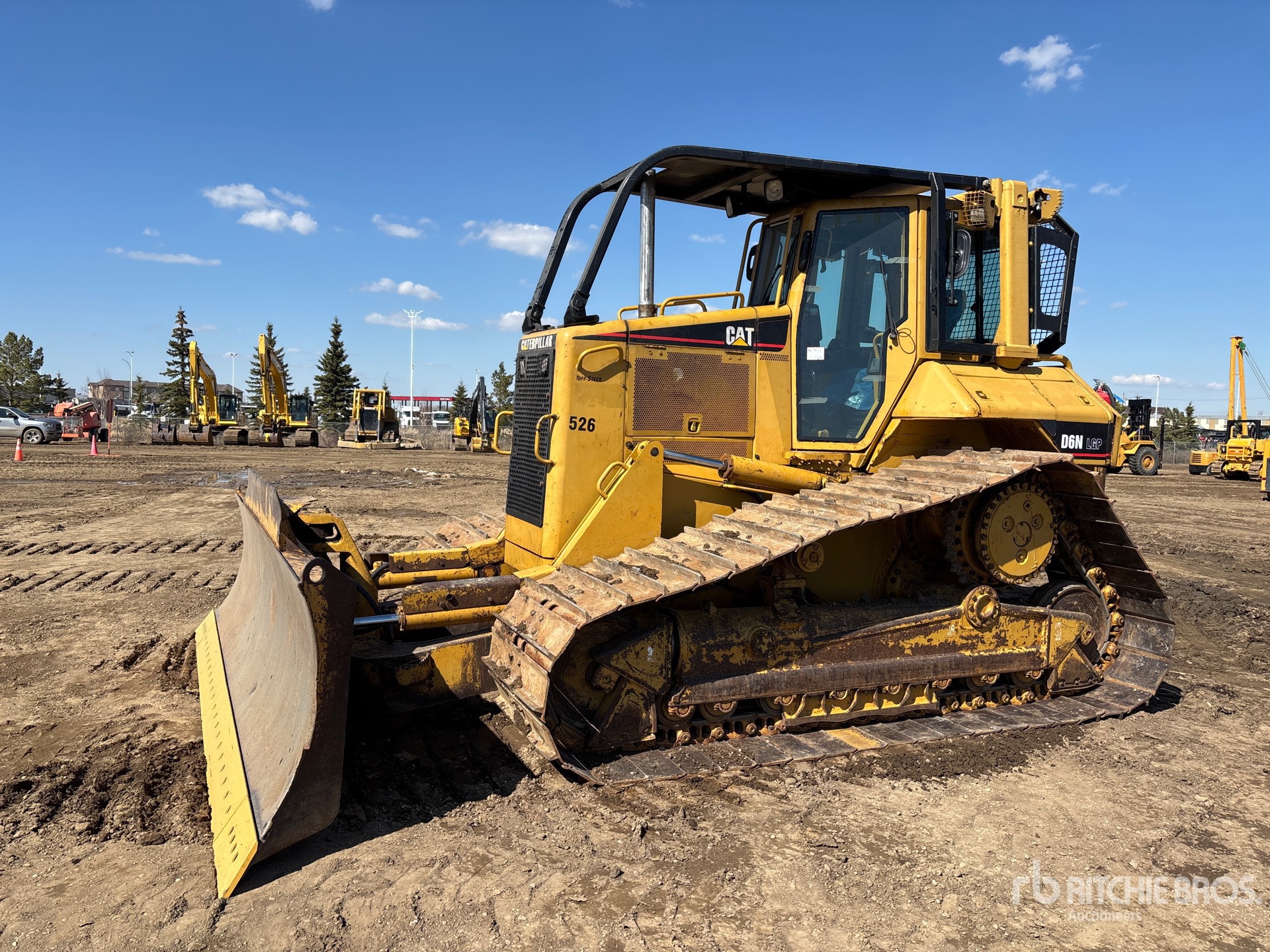 Enclosed Cab, Air Conditioner, 2003 US EPA Label, CARB Compliant, Engine Coolant Heater, Positive Air Shutoff, Sweeps, 160 in Wide PAT Blade, 34 in Single Grouser Track Shoes, Winch