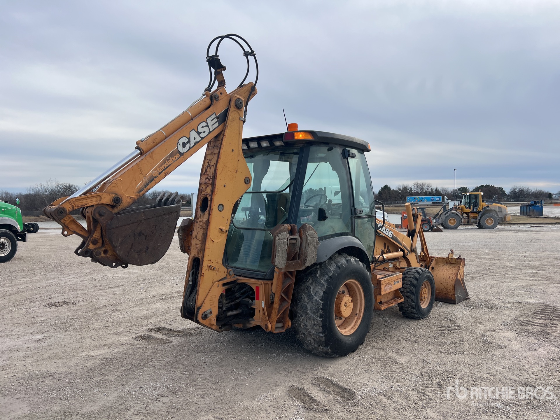 Located in Lane 8 Spot 13, Enclosed Cab, Air Conditioner, Backhoe Pilot Controls, Manual Coupler, 81 in Loader Bucket, Side Shift, 17 in Backhoe Digging Bucket