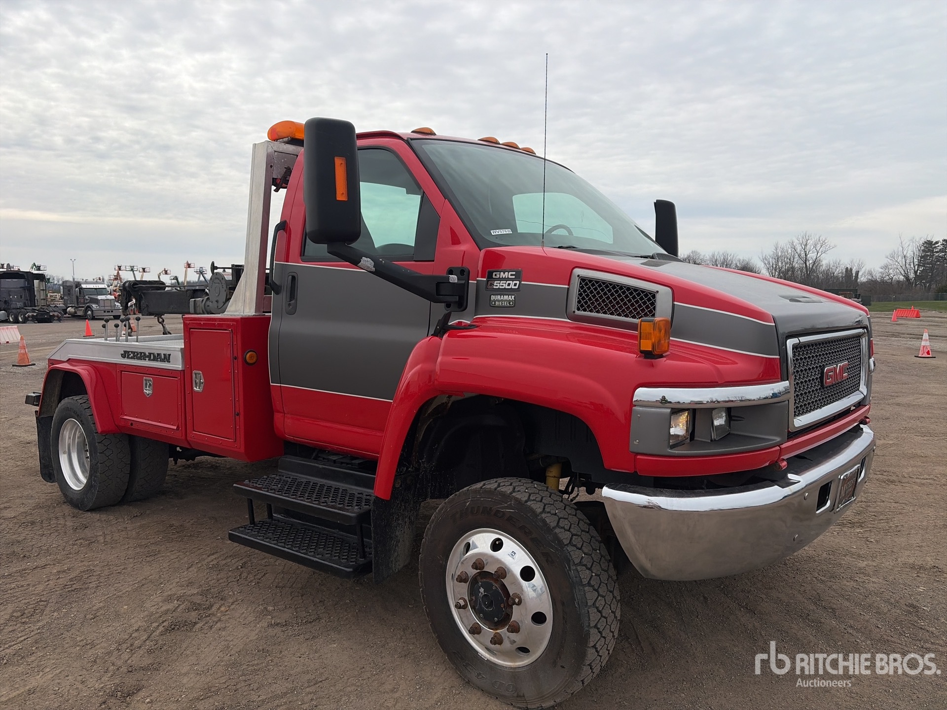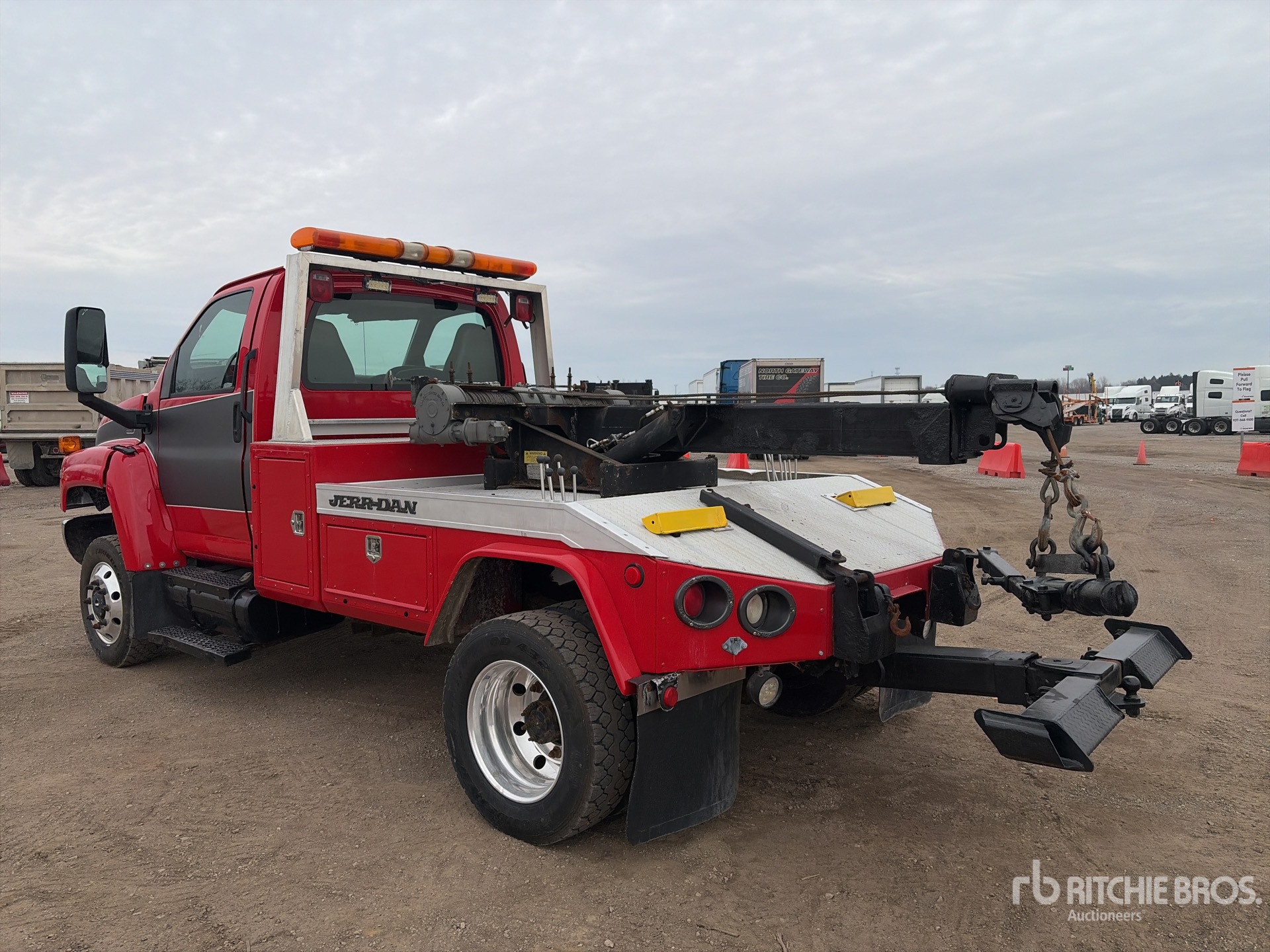 Located in Lane 9 Spot 3, V8 Diesel Engine, Exhaust Brake, Automatic Transmission, 7000 lb Front Axle, 13500 lb Rears, 19500 lb GVWR, Aluminum Wheels, 245/70R19.5, Spring Suspension, 152 in Wheelbase, Jerr-Dan Wrecker Body, 12000 lb Winch Capacity