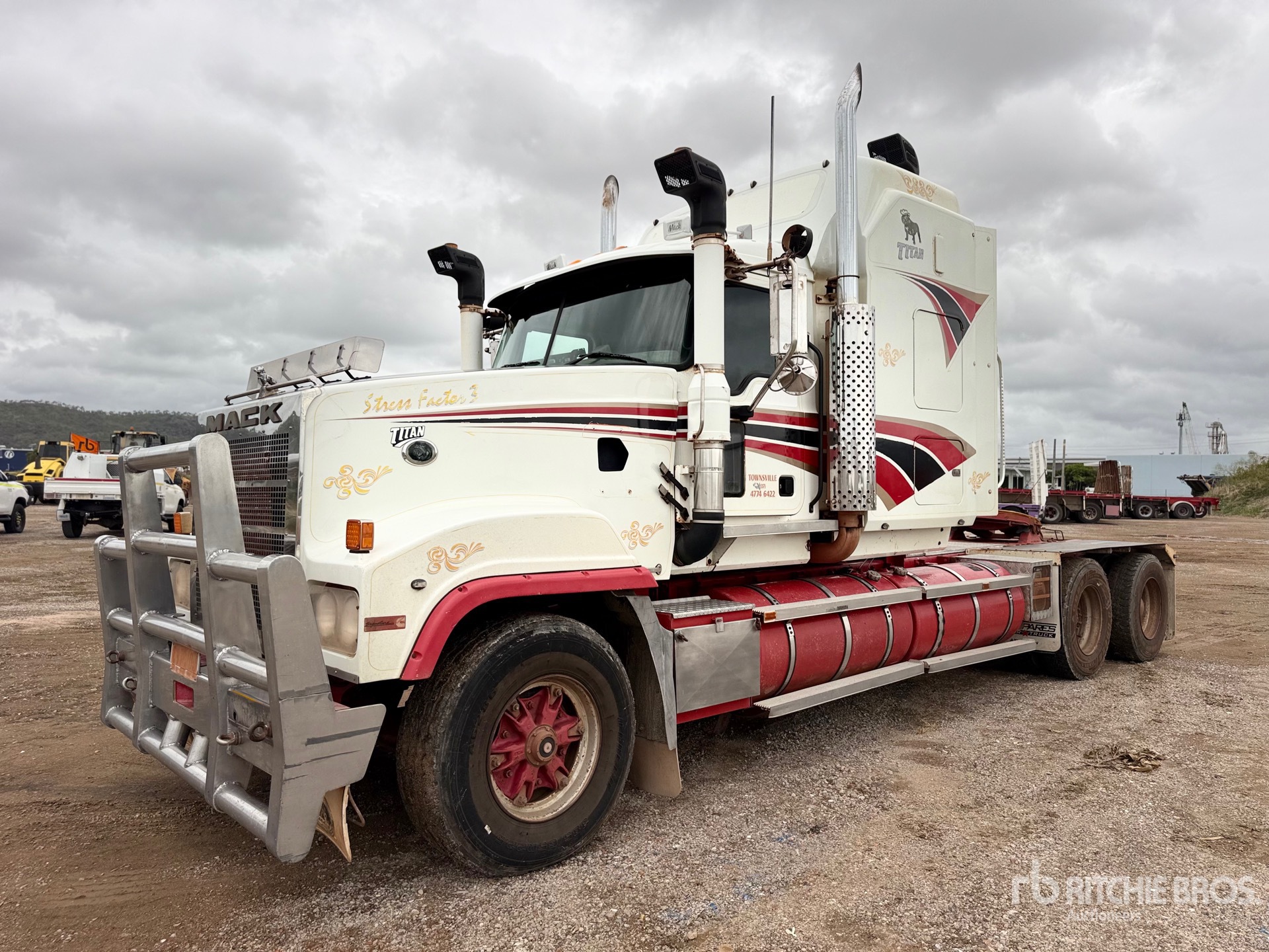 Cummins ISX 520 hp Engine, 24153 Engine hrs, Mack Maxitorque T318 18-Speed Manual Transmission 52000 lb Rears, Engine Brake, Differential Lock, 6400 mm Wheelbase, Spring Suspension, 385/65R22.5 Front Tires, 11R22.5 Rear Tires, Double Frame, Hydraulic System, GVM 26.5 t, GCM 140 t