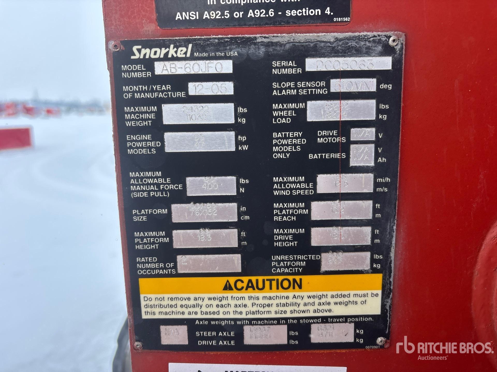 60 ft Max Platform Height, 500 lb Max Weight Capacity, Jib, Power to Platform, 4 Cylinder Dual Fuel Engine, 15-19.5 Tires