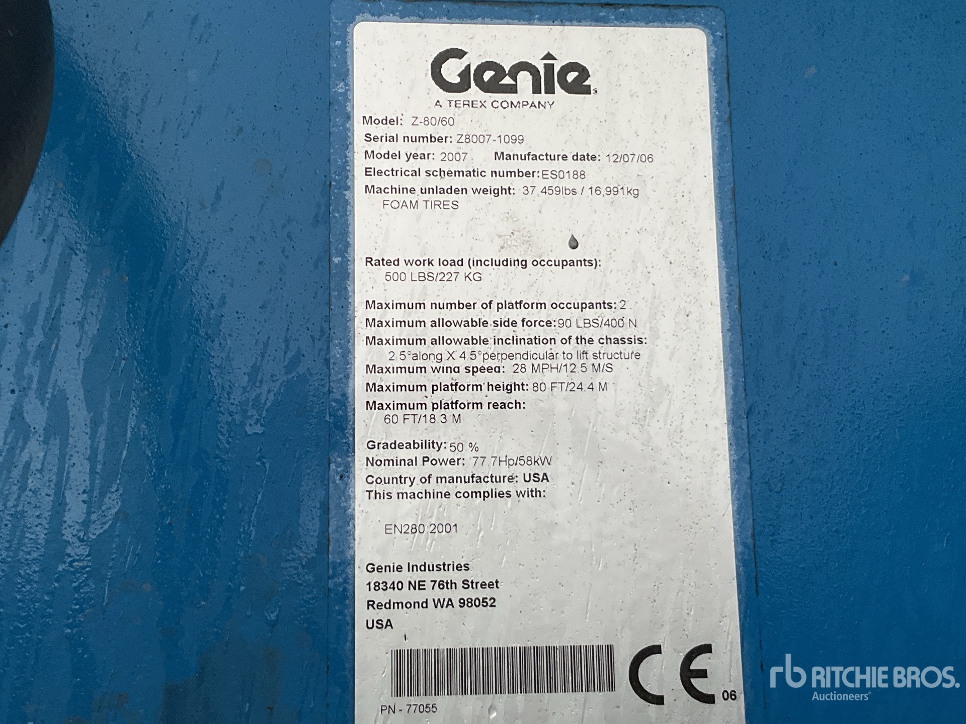 The detailed equipment information is limited in scope, and Ritchie Bros. Auctioneers has not inspected any aspects or components of the equipment other than those expressly set forth herein. Unless expressly stated, we make no representations or warranties, express or implied, concerning the equipment or its components, including without limitation any representations or warranties concerning functionality, conformity or compliance with any safety standard or requirement of any applicable authority or regulatory body, fitness for any particular purpose, or merchantability. You are strongly advised to perform your own detailed inspection of the equipment prior to bidding.