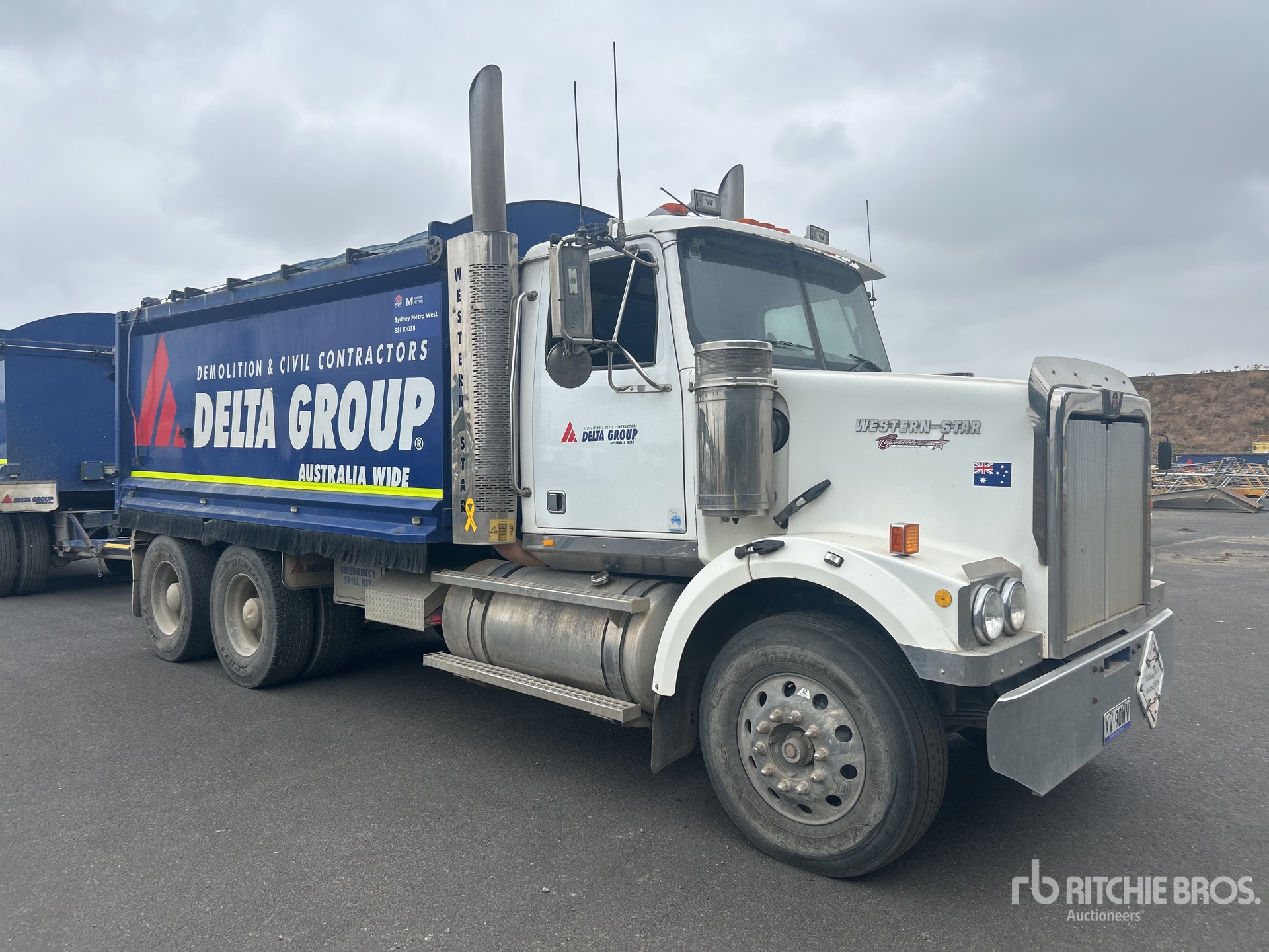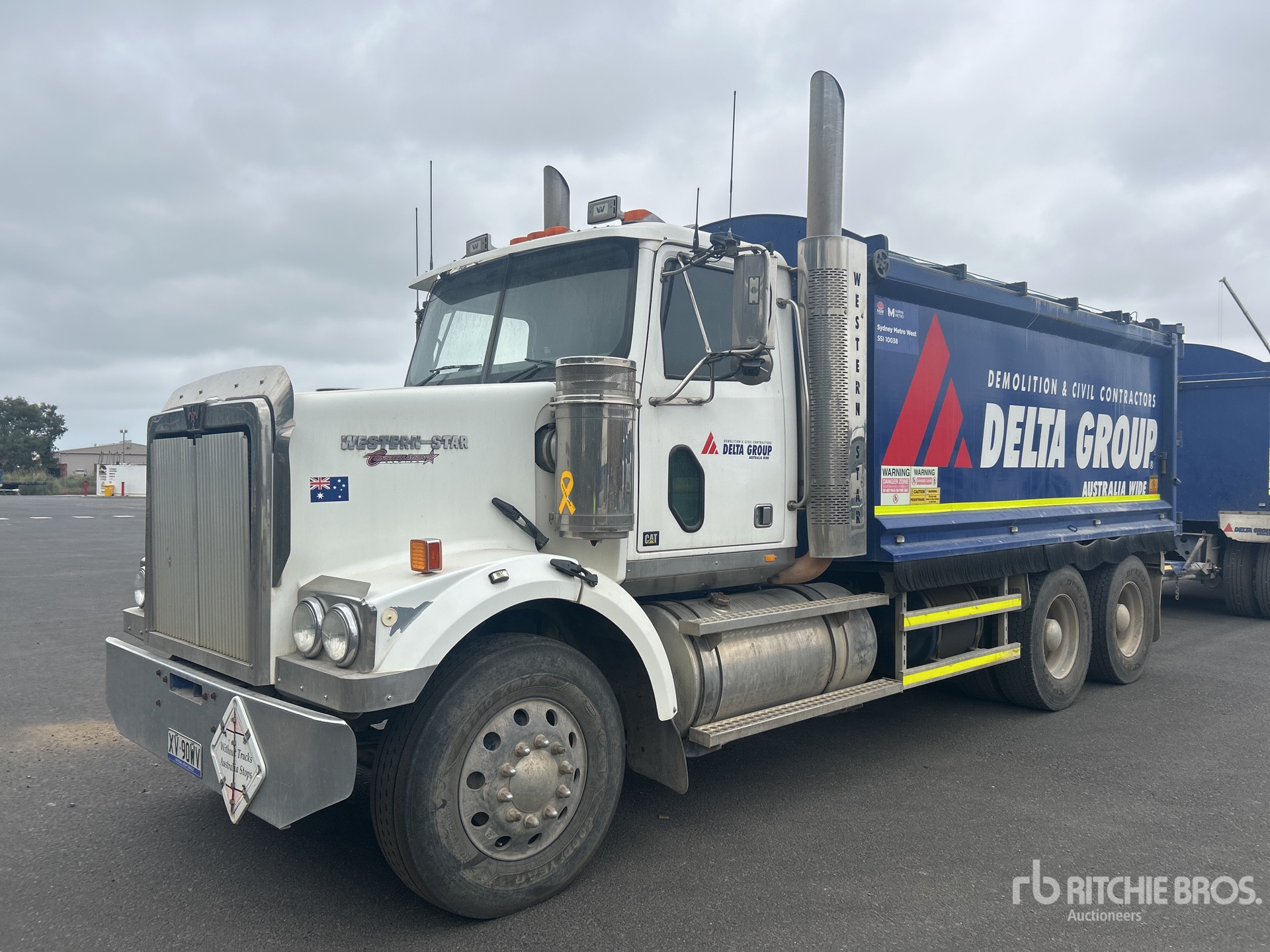 Cat C15 6 Cylinder 15.2 L Diesel Engine, 27537 Engine hrs, Engine Brake, Eaton Fuller 18-Speed Manual Transmission, Double Differential Locks, 295/80R22.5 Front Tires, 11R22.5 Rear Tires, Air Ride Suspension, 5200 mm Wheelbase, Dual PTO, Hydraulic System, 4600 mm Long x 1700 mm High Steel Body, Electric Roll Tarp, Ringfeder, GVM 24.5 t, Right Weigh Load Scales, Razor Electric Roll Tarp