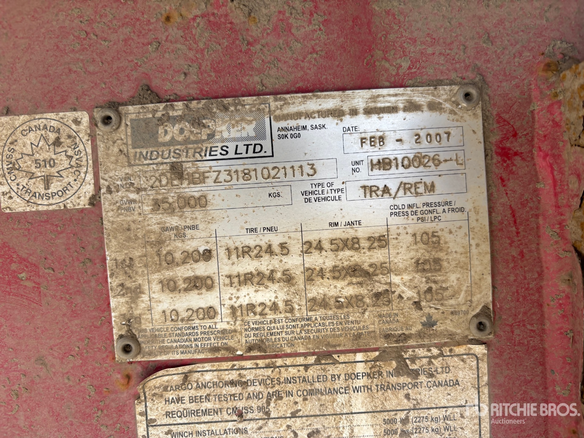 The detailed equipment information is limited in scope, and Ritchie Bros. Auctioneers has not inspected any aspects or components of the equipment other than those expressly set forth herein. Unless expressly stated, we make no representations or warranties, express or implied, concerning the equipment or its components, including without limitation any representations or warranties concerning functionality, conformity or compliance with any safety standard or requirement of any applicable authority or regulatory body, fitness for any particular purpose, or merchantability. You are strongly advised to perform your own detailed inspection of the equipment prior to bidding.