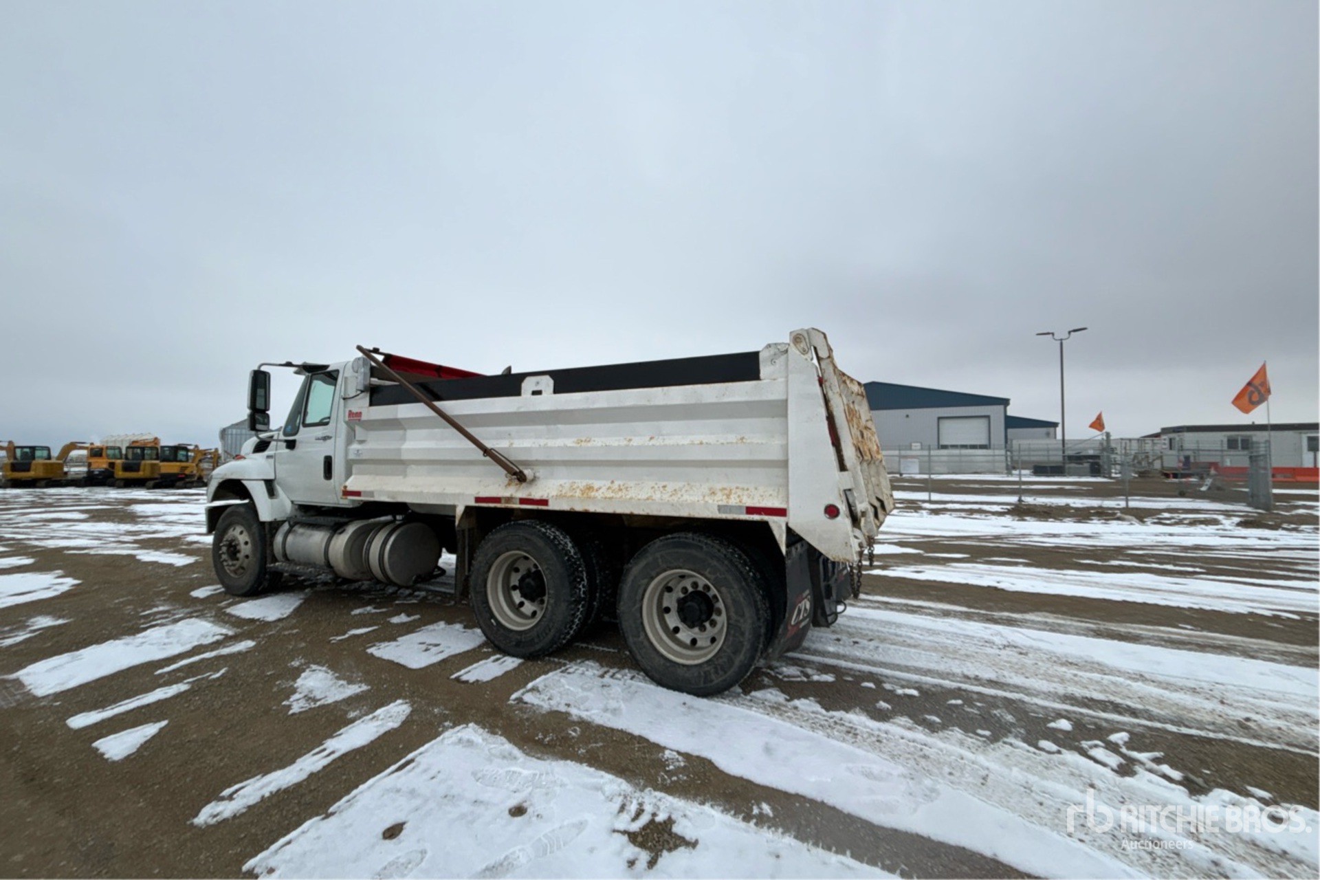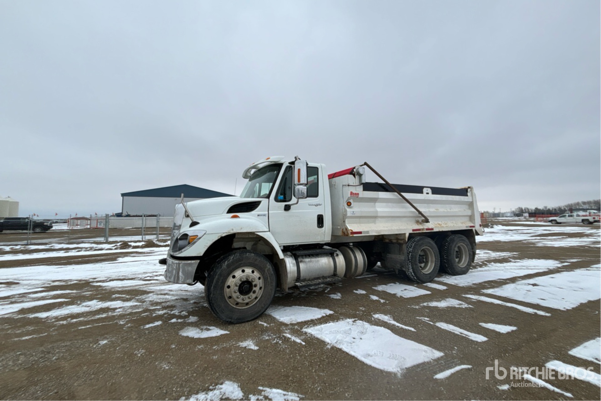 International Maxxforce 6 Cylinder 7.6 L Diesel Engine, 10040 Engine hrs, Allison Automatic Transmission, Differential Lock, 14000 lb Front Axle, 40000 lb Rears, 54000 lb GVWR, Aluminum Outer Wheels, 315/80R22.5 Front Tires, 11R22.5 Rear Tires, Hendrickson Air Ride Suspension, 190 in Wheelbase, PTO, Renn 15 ft Long x 3 ft 5 in High Steel Body, Electric Roll Tarp