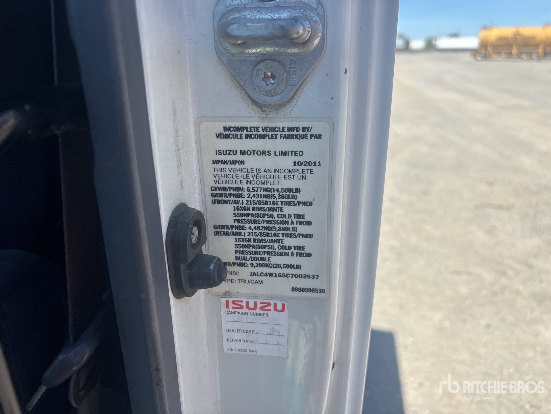 Izusu 4 Cylinder 317 cid Diesel Engine, 2011 US EPA Label, Requires Diesel Exhaust Fluid, Automatic Transmission, 14500 lb GVWR, 215/85R16, Spring Suspension, 129 in Wheelbase, 115 in Cab to Axle, 168 in Cab to End of Frame