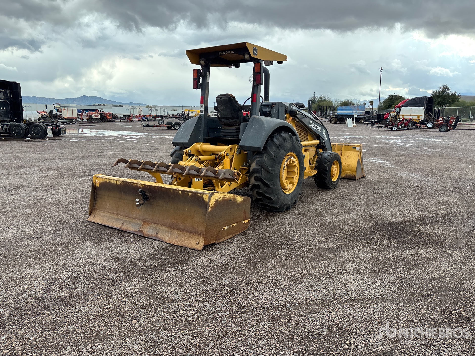 85 in Bucket, 85 in Hydraulic Tilting Box Blade w/ Hydraulic Scarifier, Rear Wheel Weights, Rear Frame Weights