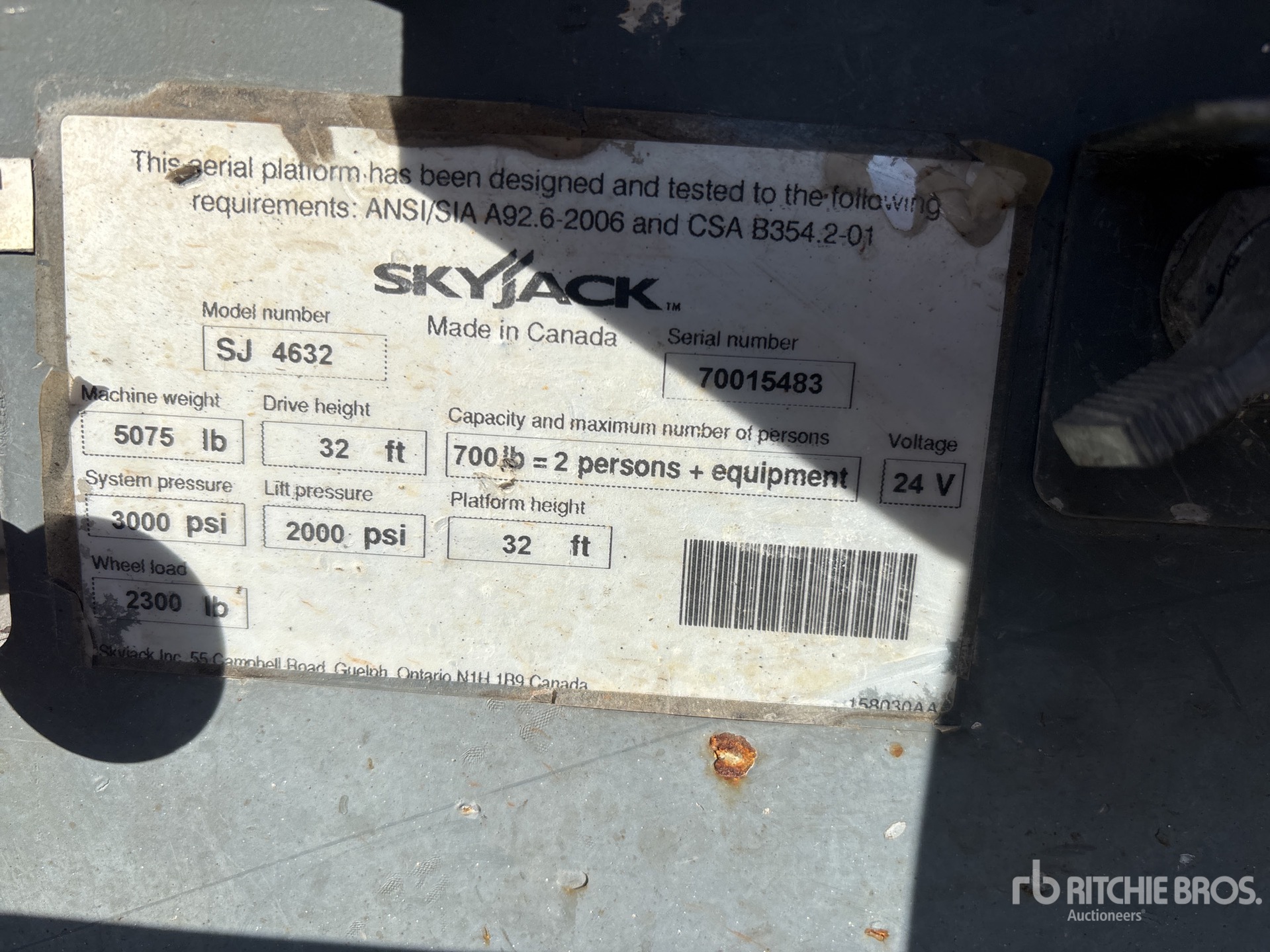The detailed equipment information is limited in scope, and Ritchie Bros. Auctioneers has not inspected any aspects or components of the equipment other than those expressly set forth herein. Unless expressly stated, we make no representations or warranties, express or implied, concerning the equipment or its components, including without limitation any representations or warranties concerning functionality, conformity or compliance with any safety standard or requirement of any applicable authority or regulatory body, fitness for any particular purpose, or merchantability. You are strongly advised to perform your own detailed inspection of the equipment prior to bidding.