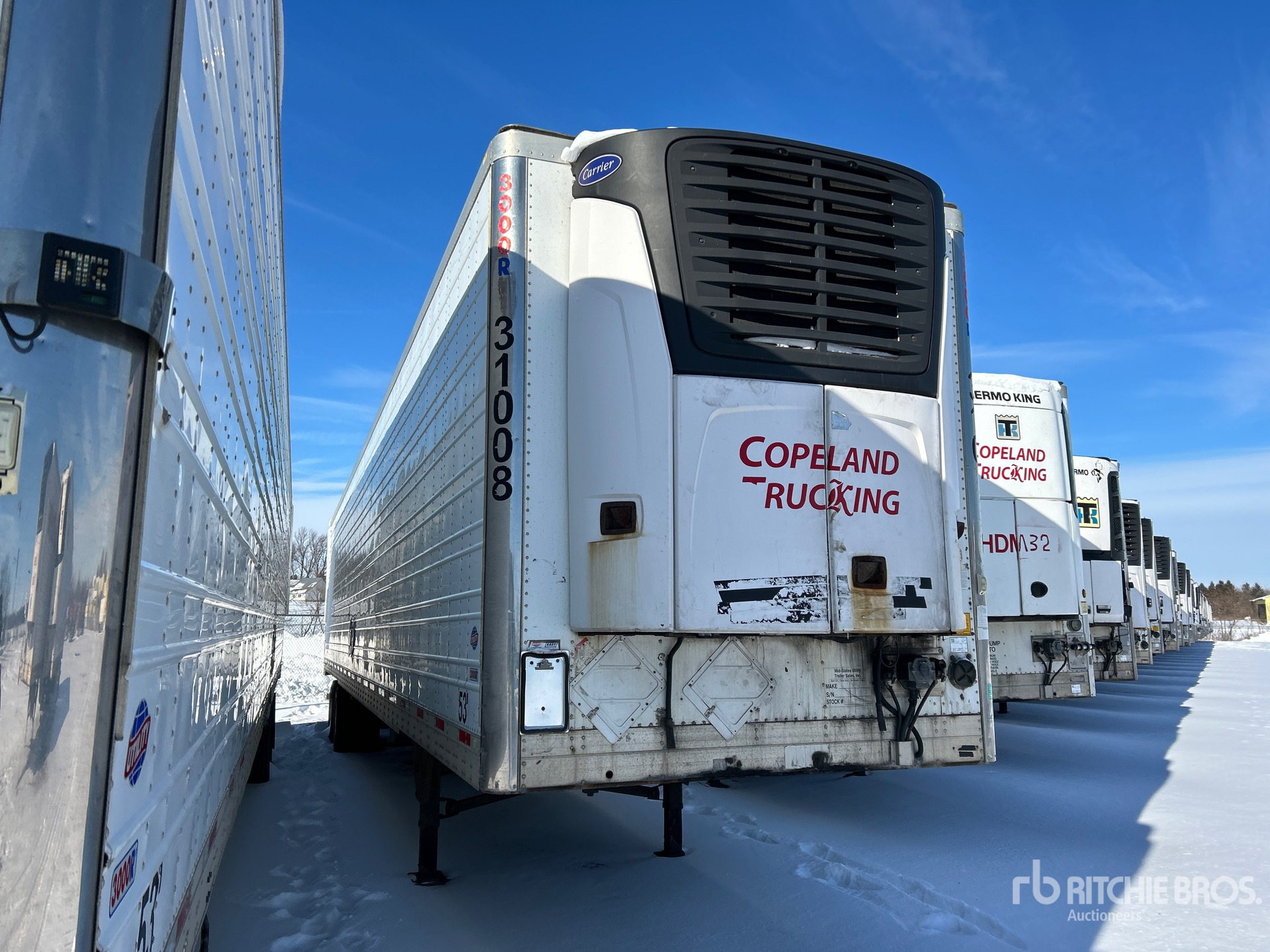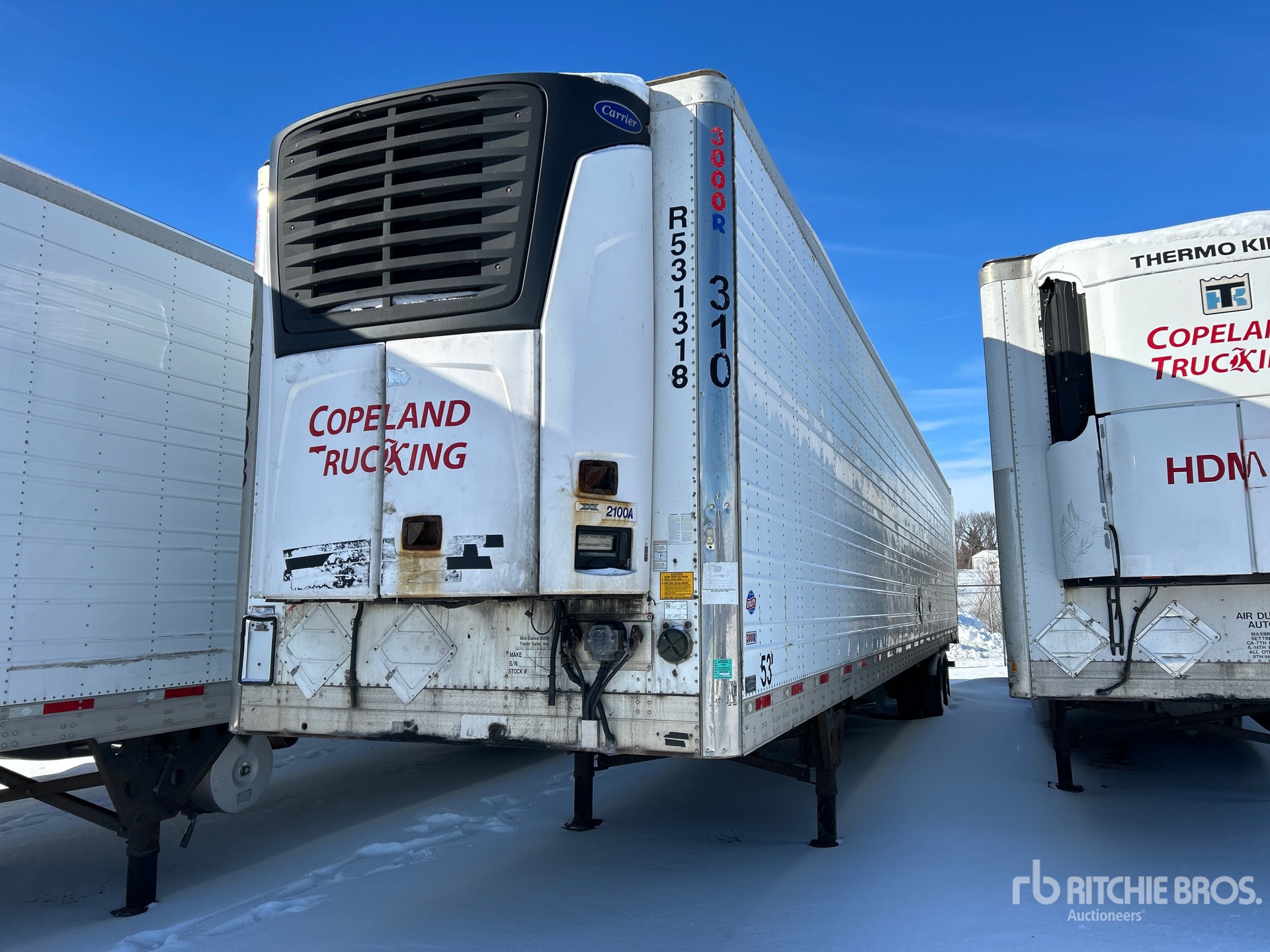 Carrier 2100a Refrigeration Unit, Aluminum/Steel Combination Frame, Air Ride Sliding Suspension, Ducted Floor, Swing Door, 295/75R22.5 Tires 65000 lb GVWR