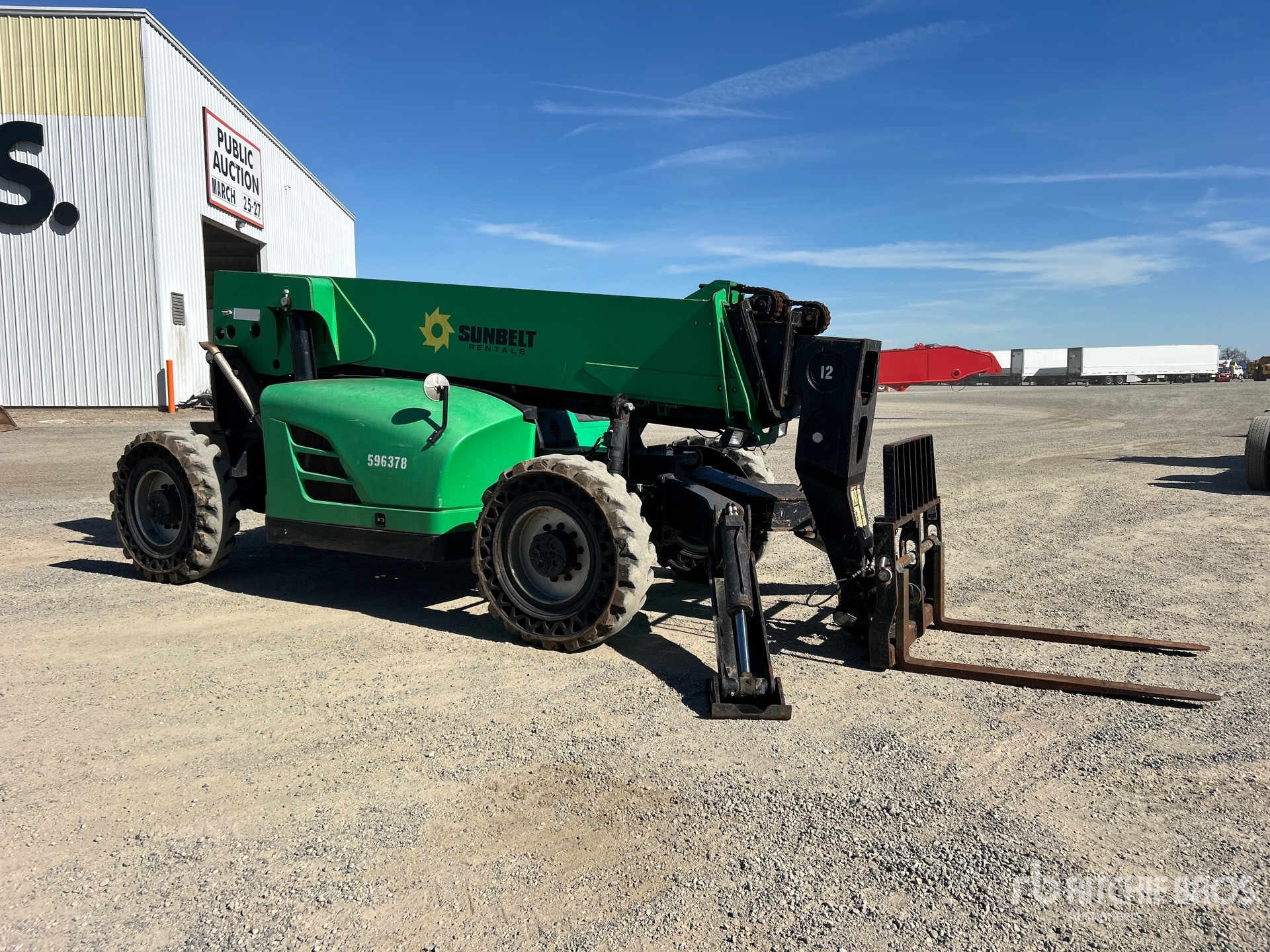 Open Operator Station, 55 ft Max Lift Height, 12000 lb Max Lift Capacity, 2014 US EPA Label, 60 in Forks, Tilt Carriage, Manual Coupler, Outriggers, 14.00-24 Aperture Tires