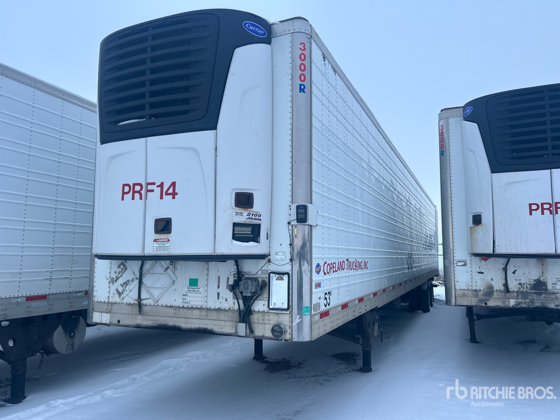 Carrier Refrigeration Unit, Aluminum/Steel Combination Frame, Air Ride Sliding Suspension, Ducted Floor, Swing Door, 295/75R22.5 Tires 65000 lb GVWR