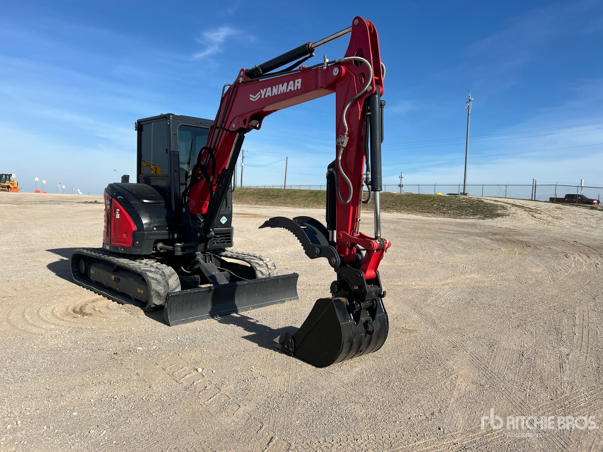 Enclosed Cab, Air Conditioner, 2021 US EPA Label, Swing Boom, 5 ft 5 in Stick, Auxiliary Hydraulic Plumbing, Stick Check Valve, Backfill Blade, 15 in Rubber Tracks, Hydraulic Quick Coupler, 31 in Digging Bucket, Hydraulic Thumb