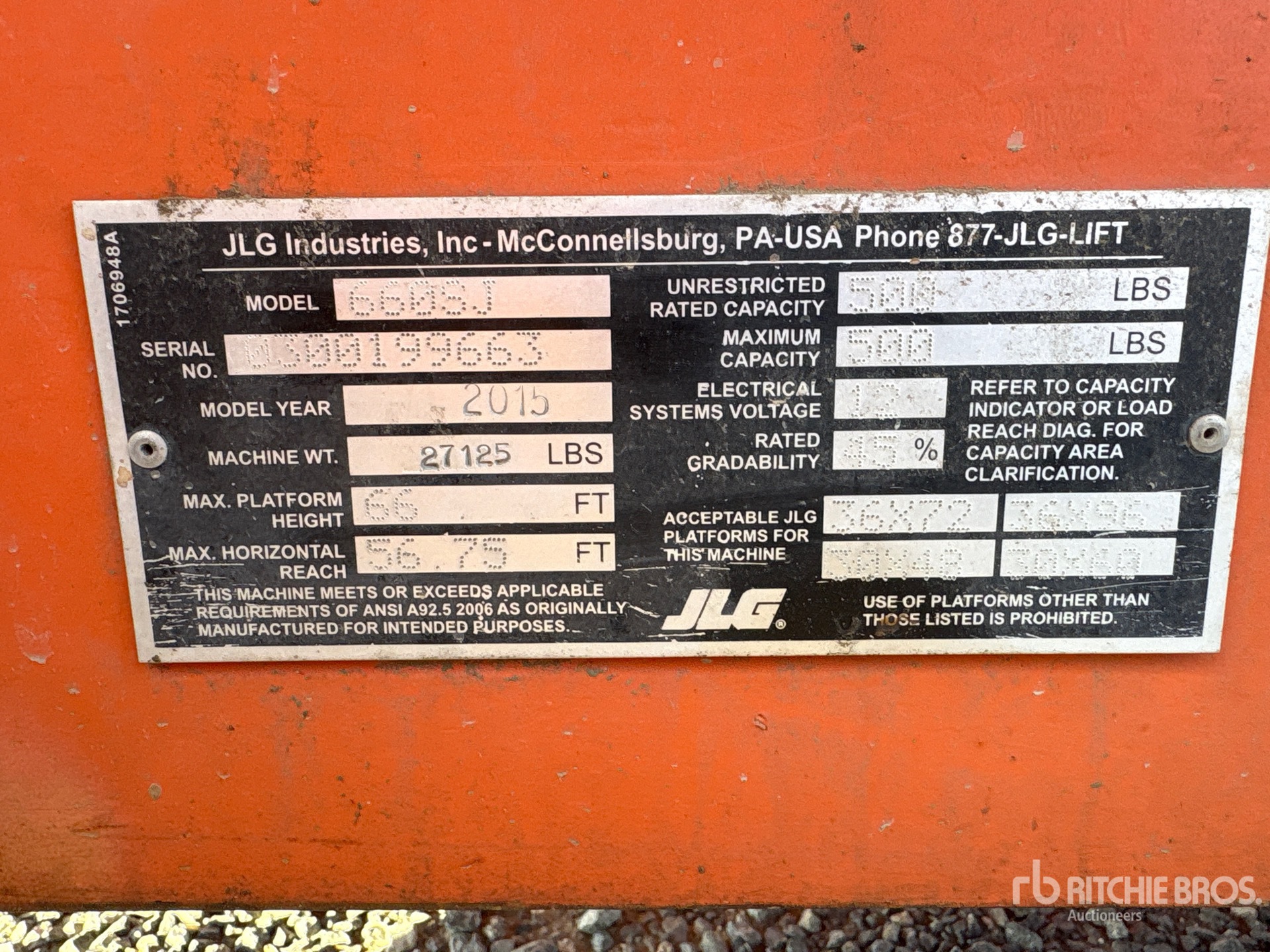 66 ft Max Platform Height, 500 lb Max Weight Capacity, Jib, Onboard Generator, 2014 US EPA Label, Deutz TD 2.9 L4 4 Cylinder 74 hp 2.9 L Diesel Engine