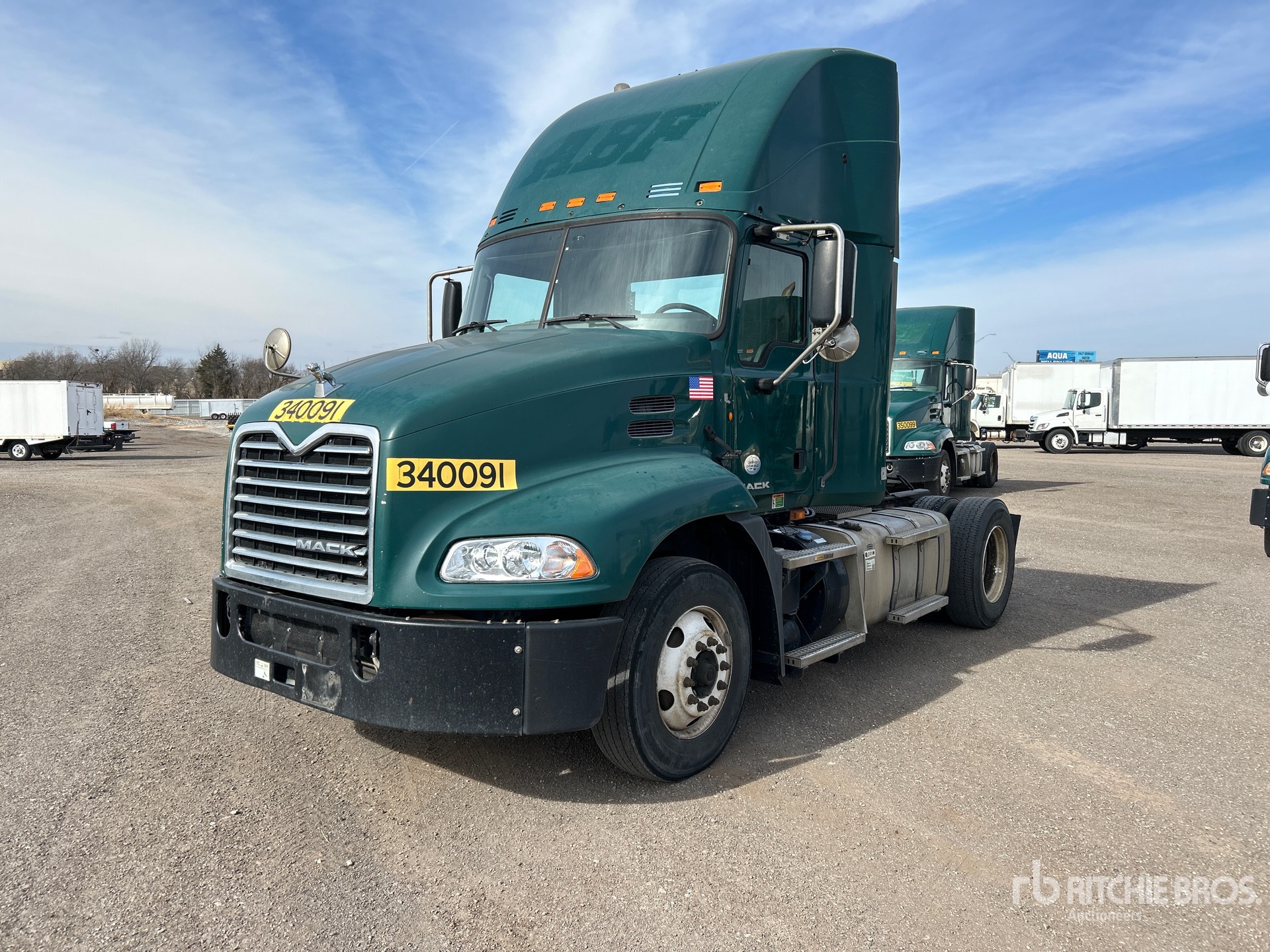 Mack MP7 Engine, 2015 US EPA Label, 19474 Engine hrs, Eaton Fuller 10-Speed Manual Transmission, 12000 lb Front Axle, 20000 lb Rears, 32000 lb GVWR, Engine Brake, 155 in Wheelbase, Air Suspension, 275/80R22.5 Front Tires, 295/75R22.5 Rear Tires, Dual Fuel Tanks