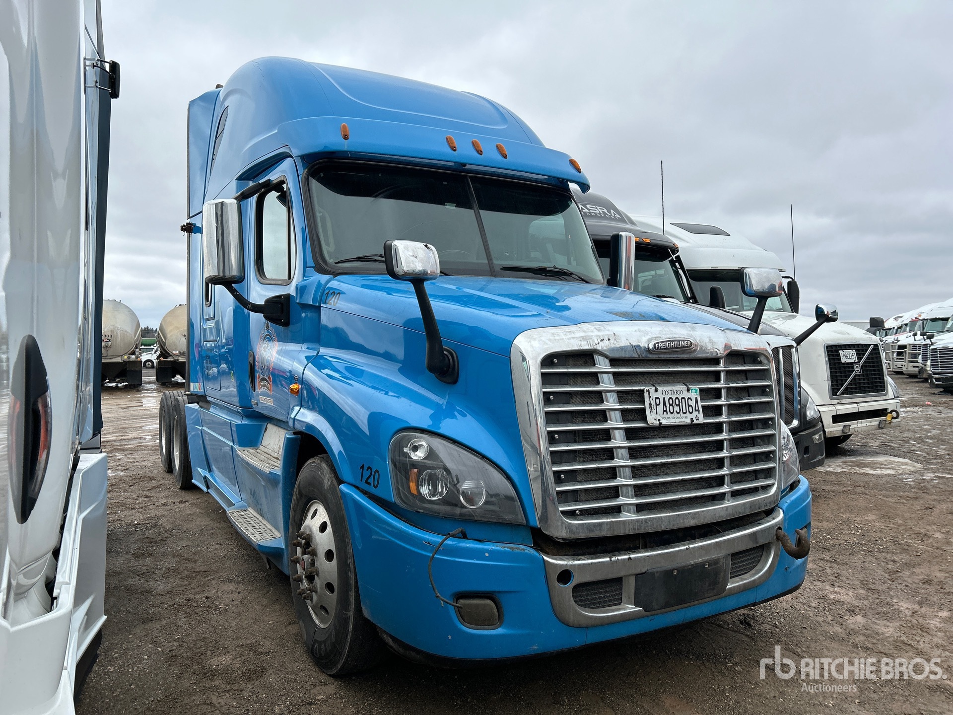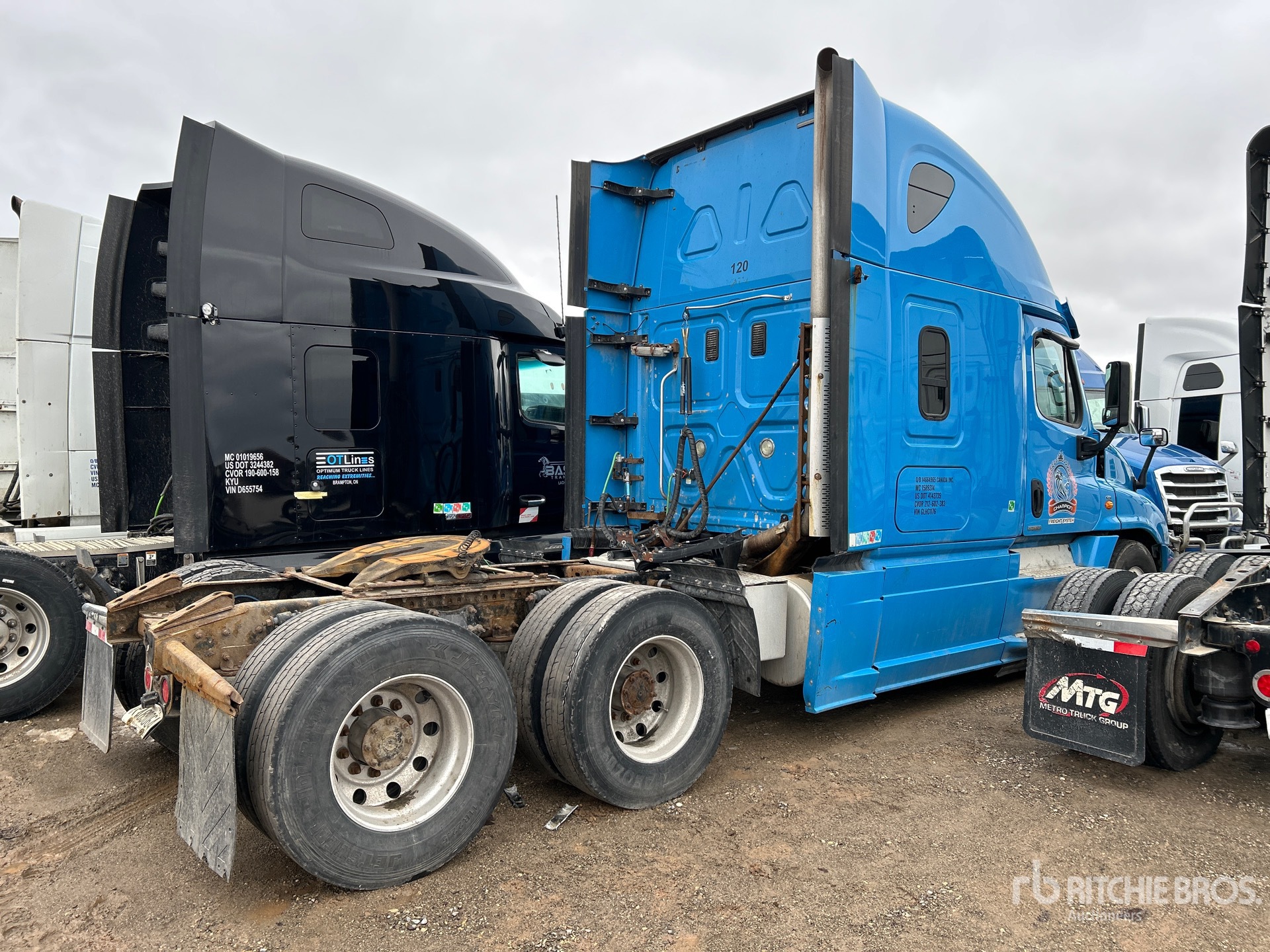 Located in Lane 19 Spot 47, Detroit DD15 505 hp Engine, 2016 US EPA Label, 25134 Engine hrs, 12500 lb Front Axle, 40000 lb Rears, 52500 lb GVWR, Engine Brake, Differential Lock, 70 in High Rise Sleeper Cab, 233 in Wheelbase, Air Suspension, Aluminum Wheels, 11R22.5, Air Sliding 5th Wheel, Dual Fuel Tanks