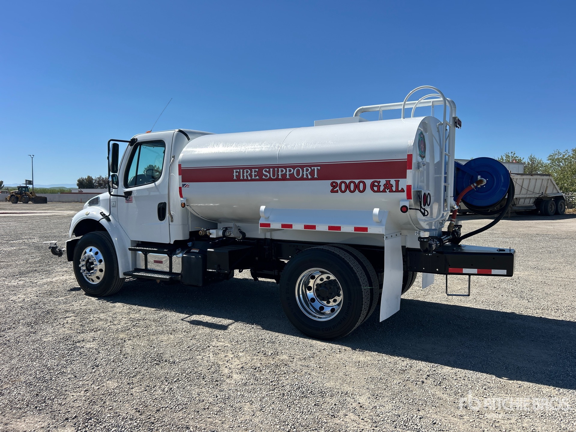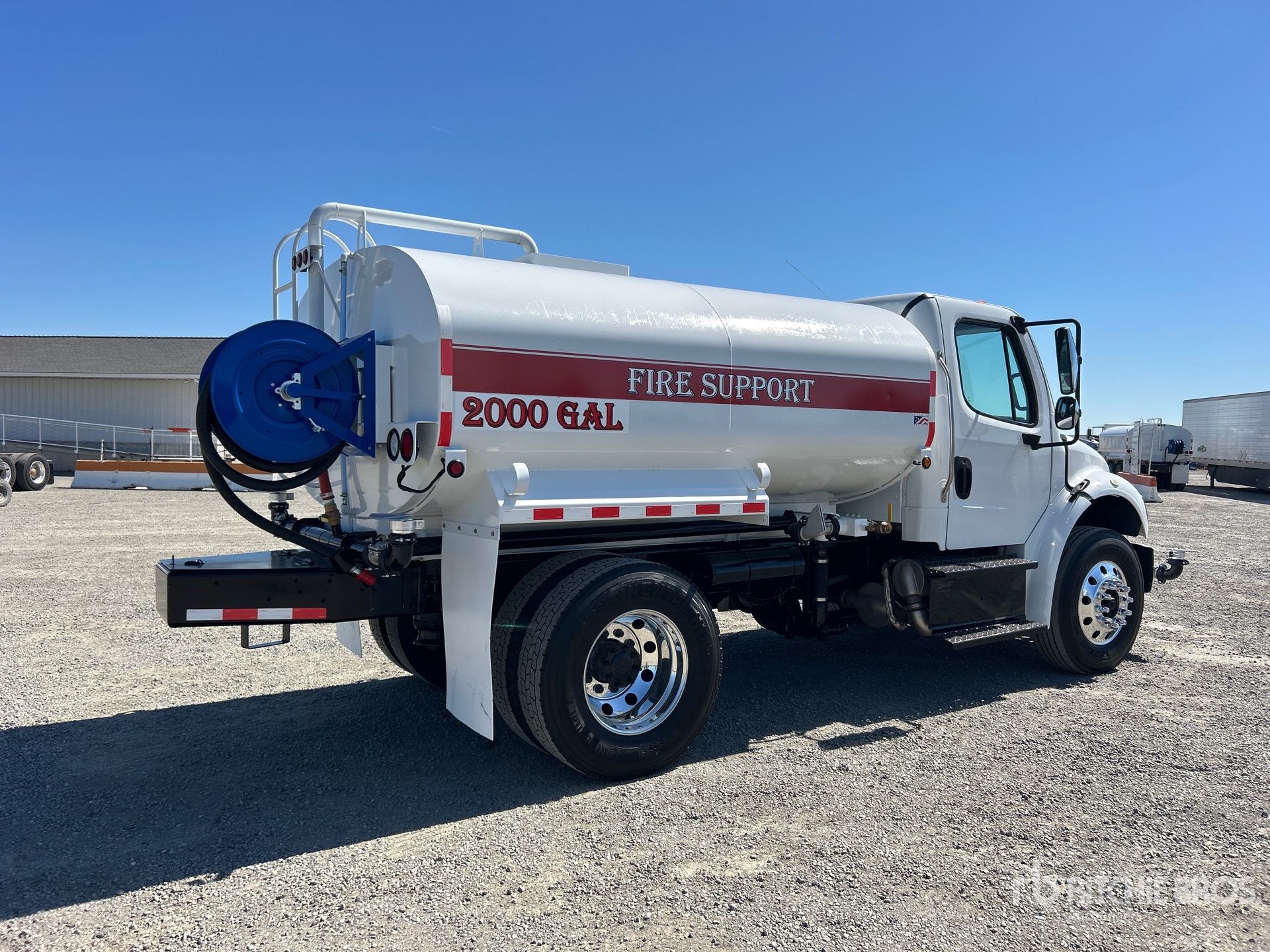 Cummins ISB 6.7 L Diesel 220 hp Engine, 2015 US EPA Label, Requires Diesel Exhaust Fluid, 9272 Engine hrs, Allison 2500 Automatic Transmission, 12000 lb Front Axle, 21000 lb Rears, Detroit DA-RS-21.0-4 Drive Axles, 5.56:1 Axle Ratio, 33000 lb GVWR, Aluminum Outer Wheels, 11R22.5, Air Ride Suspension, 204 in Wheelbase, PTO, 2000 gal Steel Tank, PTO Driven Pump, 7 ft 8 in, Spray Bar, Hose Reel, Front Spray, Rear Spray, Side Spray
