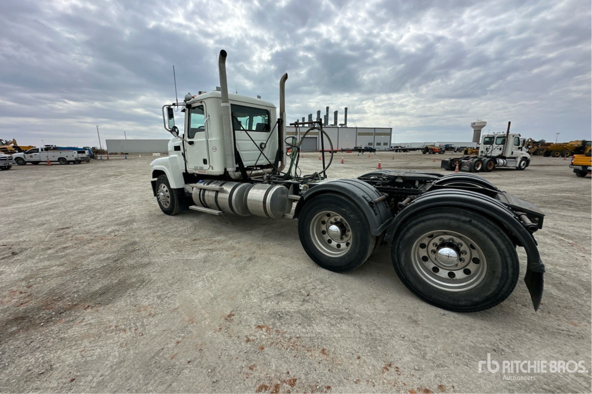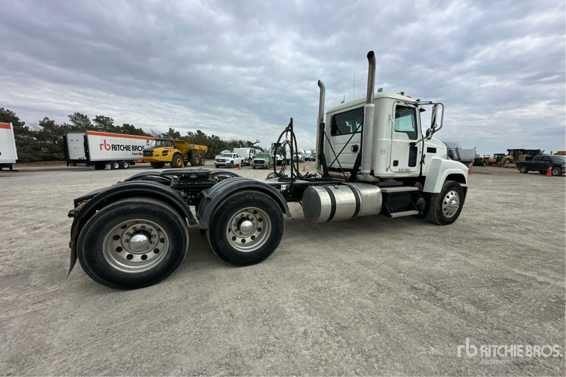Mack MP8 505 hp Engine, 2015 US EPA Label, 19165 Engine hrs, Eaton Fuller RTLO-16913A 13-Speed Manual Transmission 14320 lb Front Axle, 38000 lb Rears, 52320 lb GVWR, Engine Brake, Differential Lock, 220 in Wheelbase, Air Suspension, Aluminum Outer Wheels, 11R24.5, Wet Kit, Air Sliding 5th Wheel, Dual Fuel Tanks