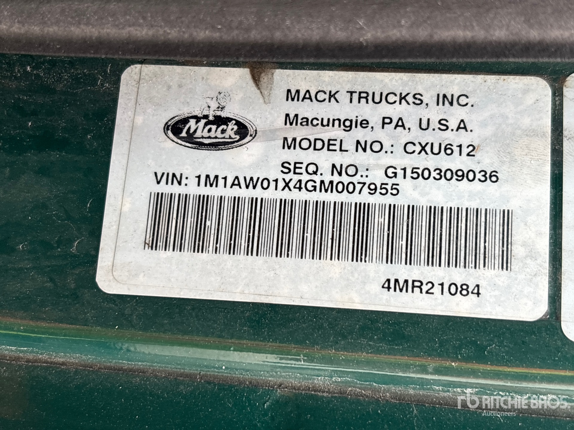 Located in Lane 6 Spot 23, Mack MP7 395 hp Engine, 2015 US EPA Label, 21353 Engine hrs, Eaton Fuller 10-Speed Manual Transmission, 12000 lb Front Axle, 20000 lb Rears, 32000 lb GVWR, 155 in Wheelbase, Air Suspension, 295/75R22.5, Dual Fuel Tanks