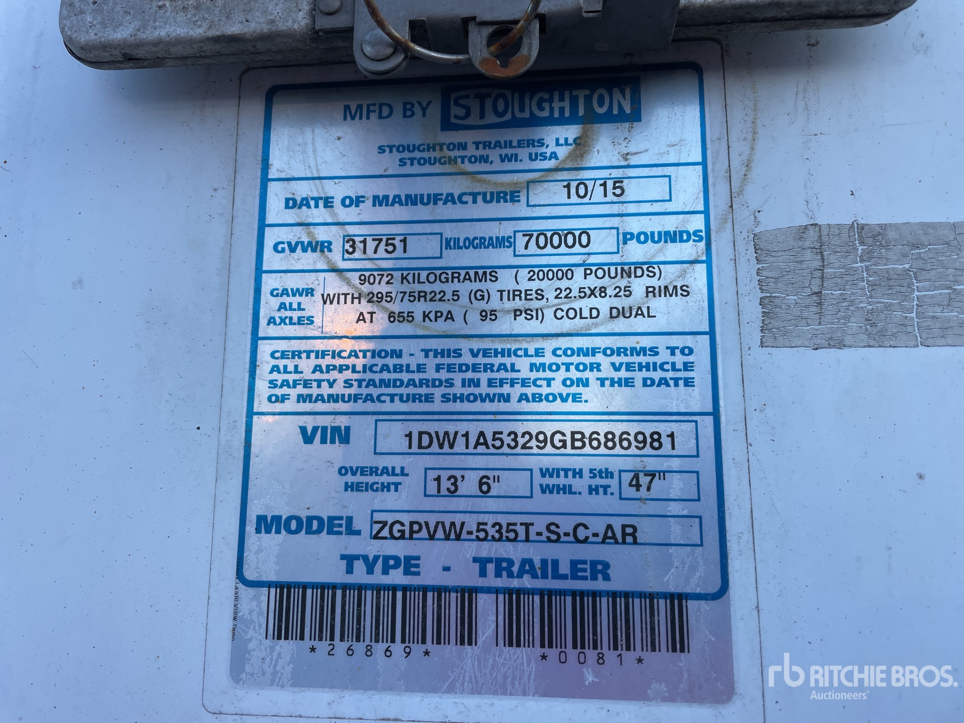 The detailed equipment information is limited in scope, and Ritchie Bros. Auctioneers has not inspected any aspects or components of the equipment other than those expressly set forth herein. Unless expressly stated, we make no representations or warranties, express or implied, concerning the equipment or its components, including without limitation any representations or warranties concerning functionality, conformity or compliance with any safety standard or requirement of any applicable authority or regulatory body, fitness for any particular purpose, or merchantability. You are strongly advised to perform your own detailed inspection of the equipment prior to bidding.
