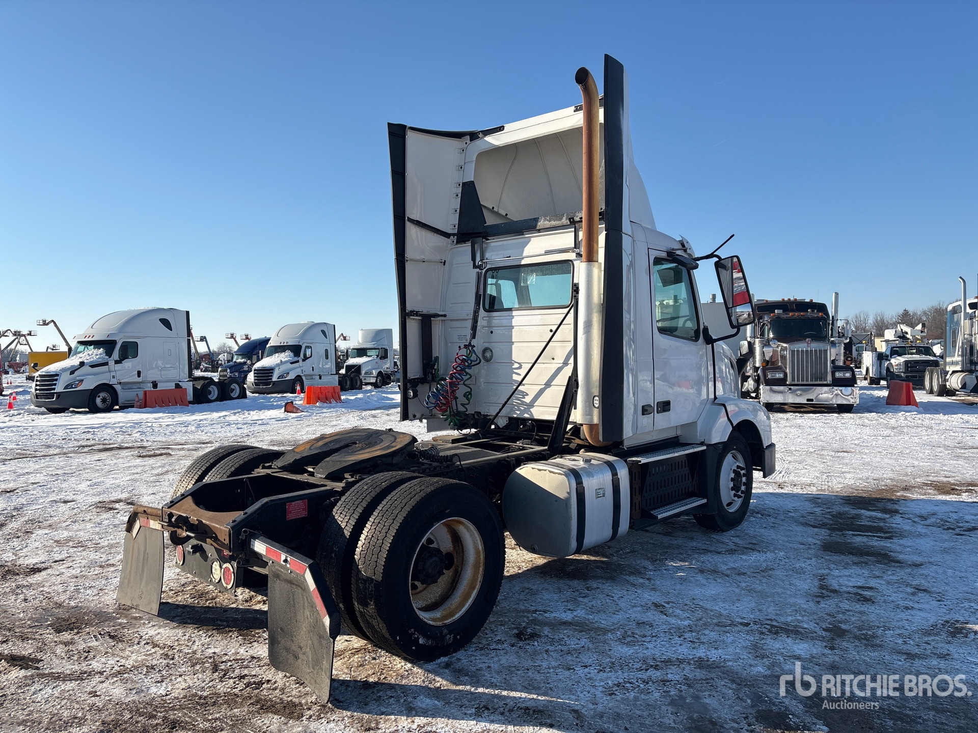 Located in Lane 15, Cummins ISX15 400 hp Engine, 2015 US EPA Label, Eaton Fuller FRO-15210C 10-Speed Manual Transmission, 12000 lb Front Axle, 22700 lb Rears, 34700 lb GVWR, 156 in Wheelbase, Air Suspension, 295/75R22.5, Air Sliding 5th Wheel, Dual Fuel Tanks