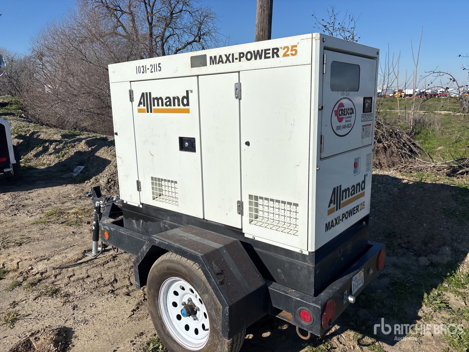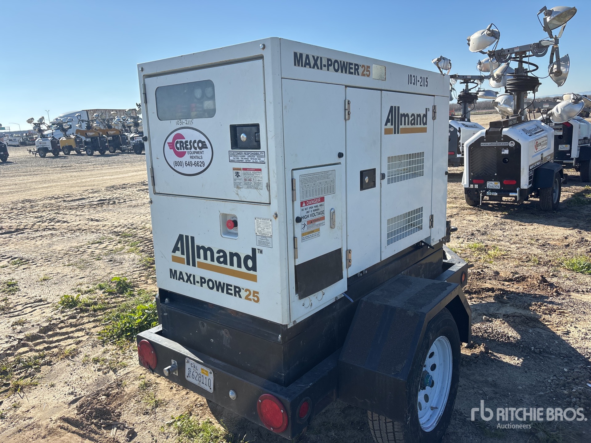2017 US EPA Label, Isuzu 4 Cylinder 2.2 L Diesel Engine, 25 kVA/ Rated 3 Phase Output, 240 V / 480 V Rated Voltage, 240 V & 120 V Receptacles, Lunette Ring Carrier Trailer
