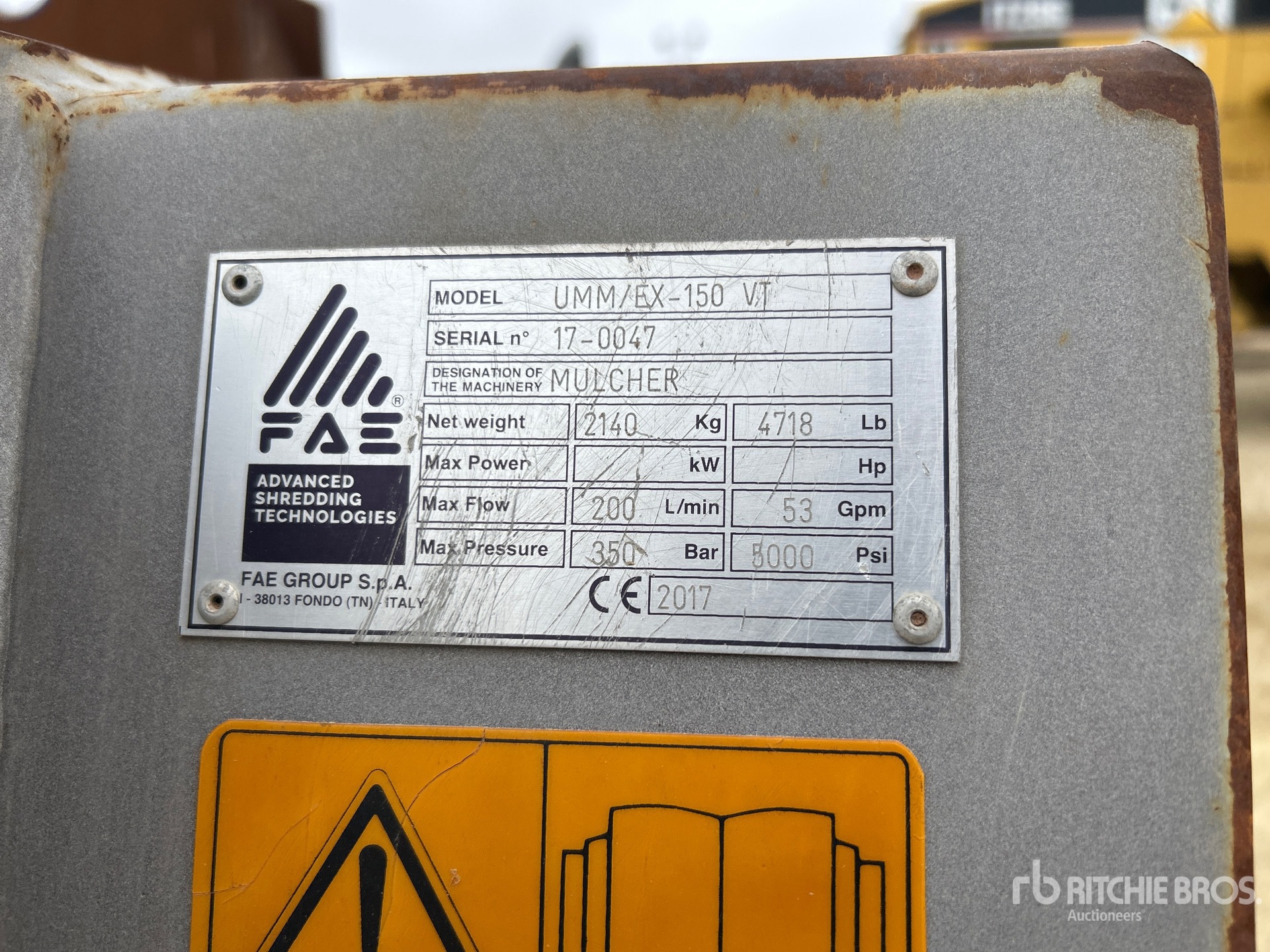 The detailed equipment information is limited in scope, and Ritchie Bros. Auctioneers has not inspected any aspects or components of the equipment other than those expressly set forth herein. Unless expressly stated, we make no representations or warranties, express or implied, concerning the equipment or its components, including without limitation any representations or warranties concerning functionality, conformity or compliance with any safety standard or requirement of any applicable authority or regulatory body, fitness for any particular purpose, or merchantability. You are strongly advised to perform your own detailed inspection of the equipment prior to bidding.