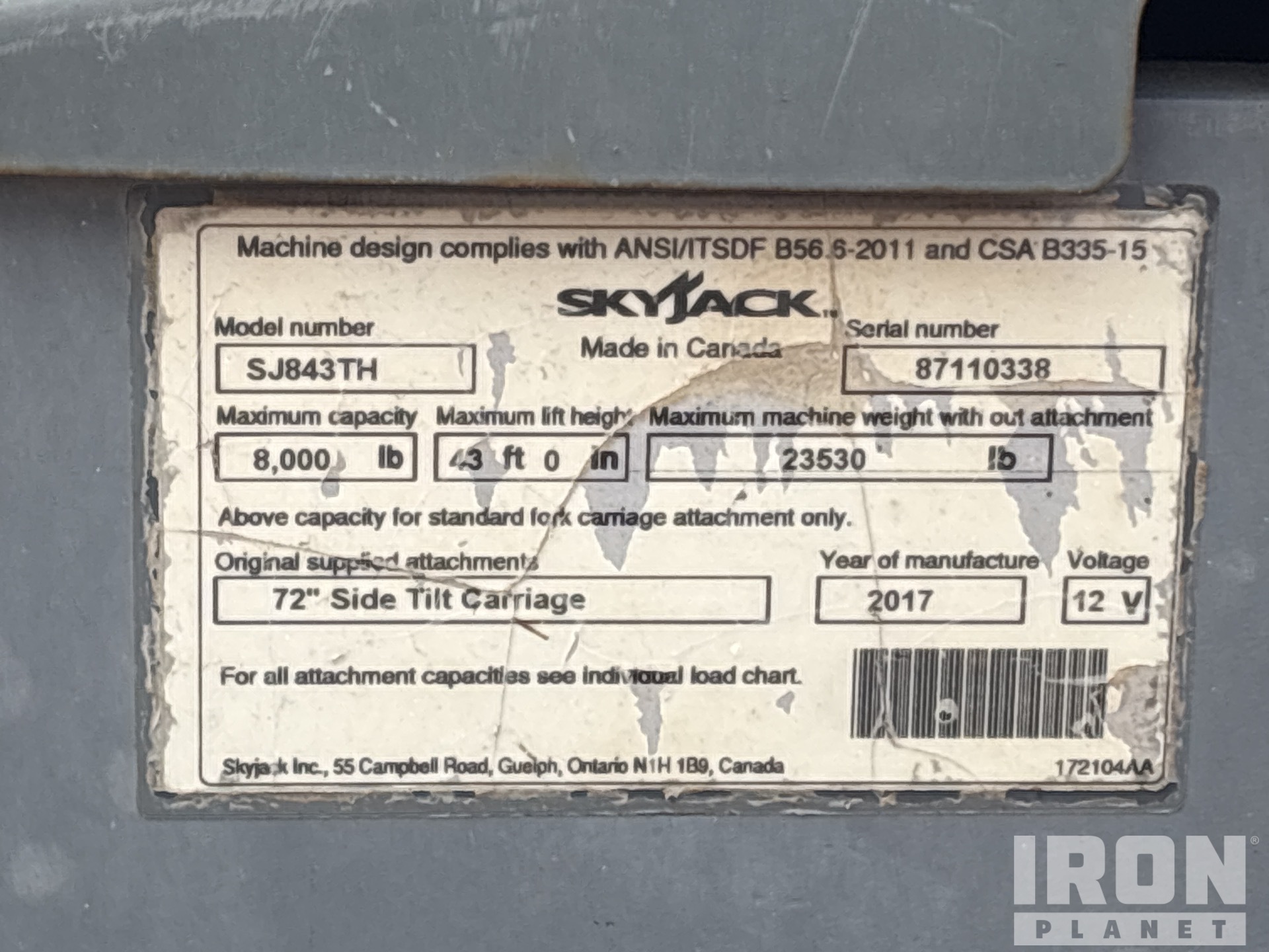 The detailed equipment information is limited in scope, and Ritchie Bros. Auctioneers has not inspected any aspects or components of the equipment other than those expressly set forth herein. Unless expressly stated, we make no representations or warranties, express or implied, concerning the equipment or its components, including without limitation any representations or warranties concerning functionality, conformity or compliance with any safety standard or requirement of any applicable authority or regulatory body, fitness for any particular purpose, or merchantability. You are strongly advised to perform your own detailed inspection of the equipment prior to bidding.