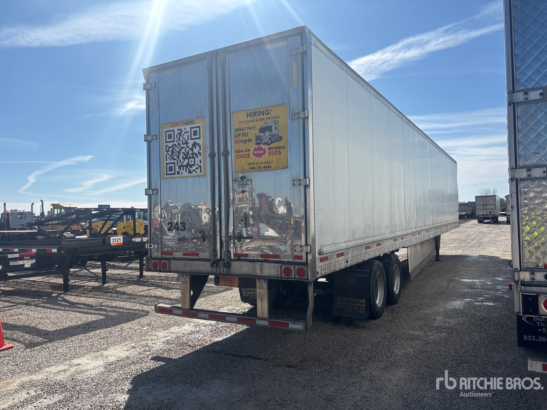 2016 Carrier X4 7500 Refrigeration Unit, Aluminum/Steel Combination Frame, Air Ride Sliding Suspension, Side Skirts, Ducted Floor, Swing Door, 275/80R22.5 Tires, 68000 lb GVWR