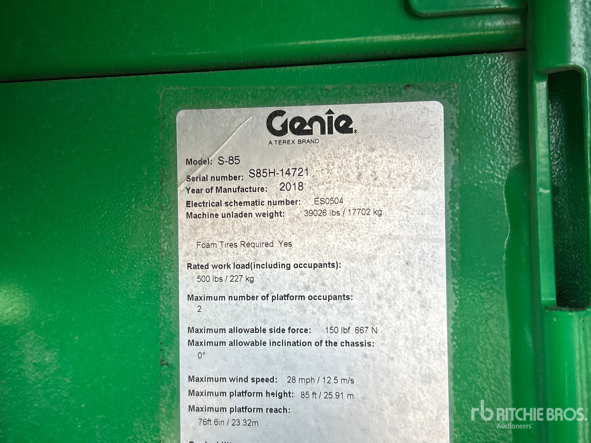 The detailed equipment information is limited in scope, and Ritchie Bros. Auctioneers has not inspected any aspects or components of the equipment other than those expressly set forth herein. Unless expressly stated, we make no representations or warranties, express or implied, concerning the equipment or its components, including without limitation any representations or warranties concerning functionality, conformity or compliance with any safety standard or requirement of any applicable authority or regulatory body, fitness for any particular purpose, or merchantability. You are strongly advised to perform your own detailed inspection of the equipment prior to bidding.