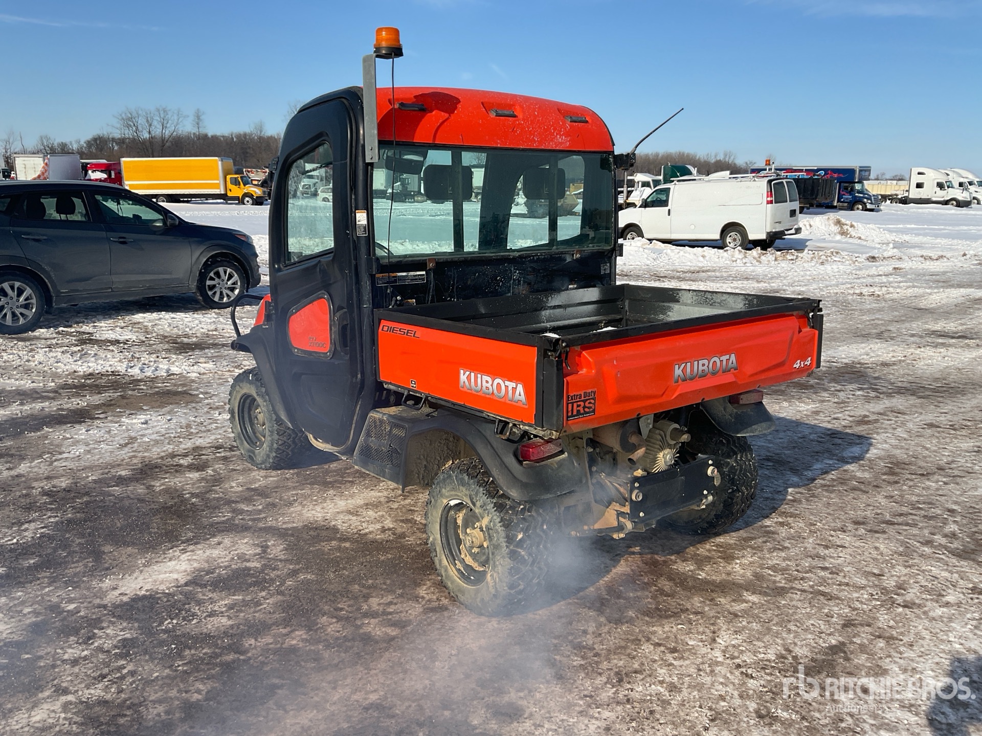 Enclosed Cab, Air Conditioner, 2 Passenger, Windshield, Locking Front Differential, Brush Guard, Hitch Receiver, Hydraulic Dump Bed, Tier 4, US EPA Label, Kubota D1105 3 Cylinder 1 L Engine