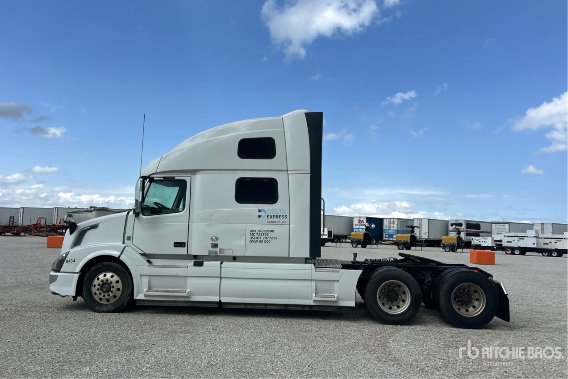 Volvo D13M 500 hp Engine, 2017 US EPA Label, 4039 Engine hrs, Volvo Automated Transmission, 13200 lb Front Axle, 38000 lb Rears, 51200 lb GVWR, Engine Brake, 61 in High Rise Sleeper Cab, Bunk Beds, 236 in Wheelbase, Air Suspension, Aluminum Wheels, 295/75R22.5, Air Sliding 5th Wheel, Dual Fuel Tanks