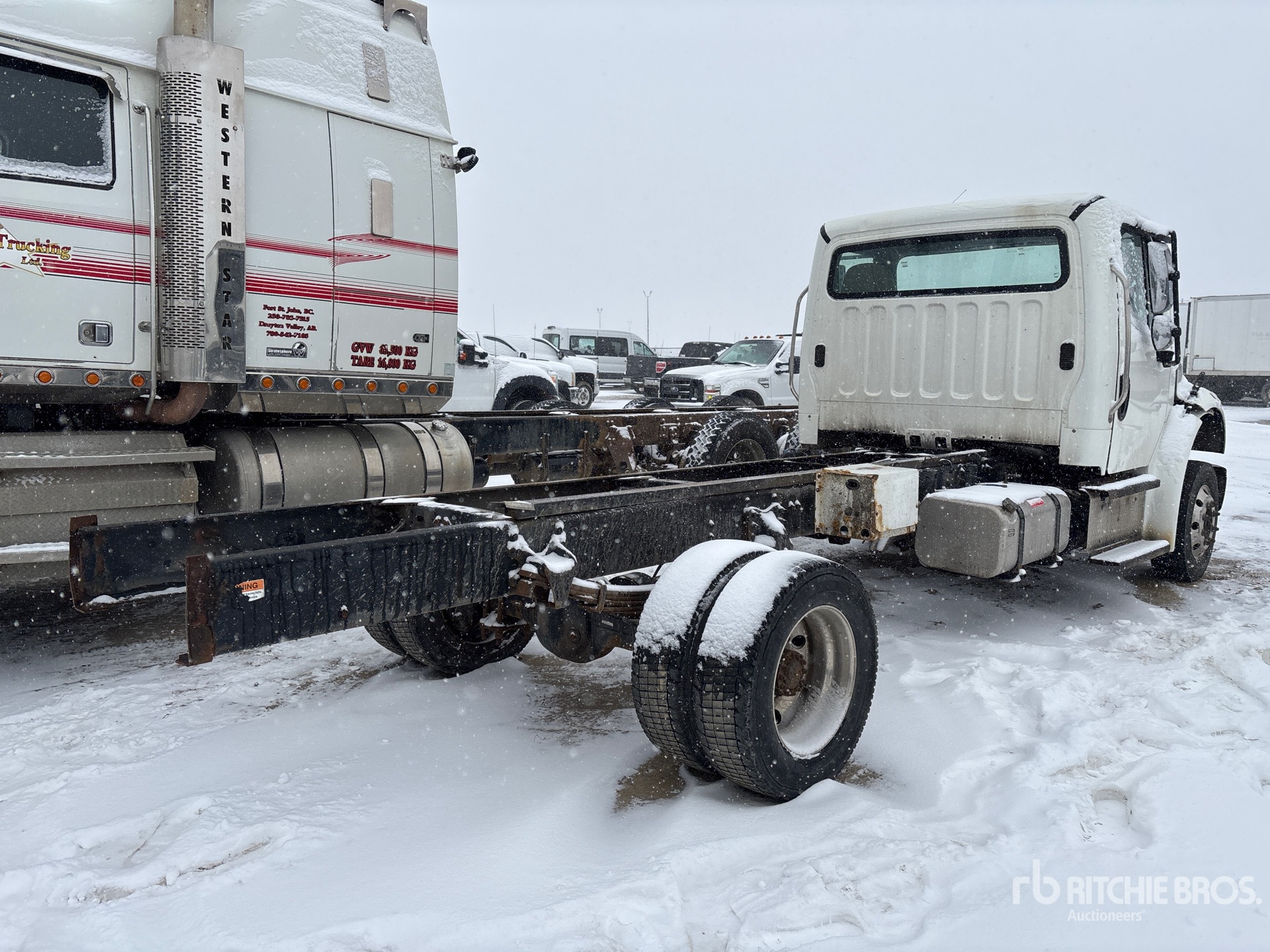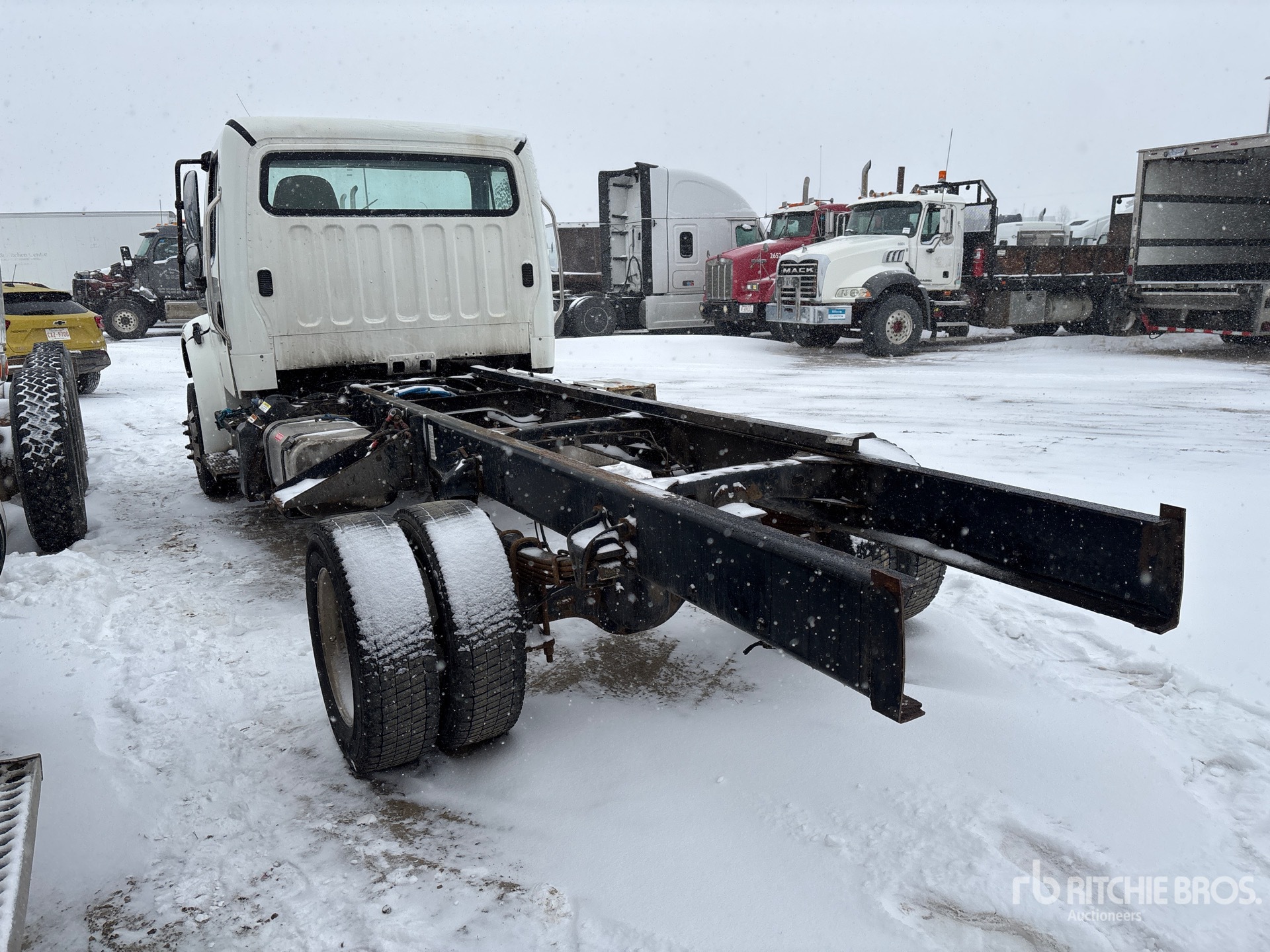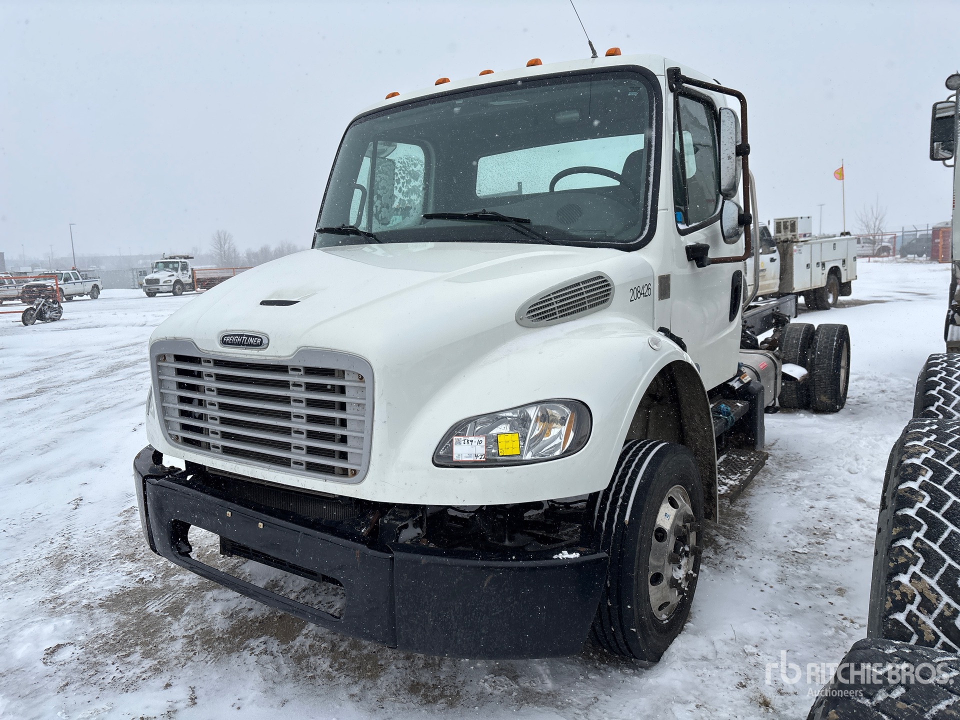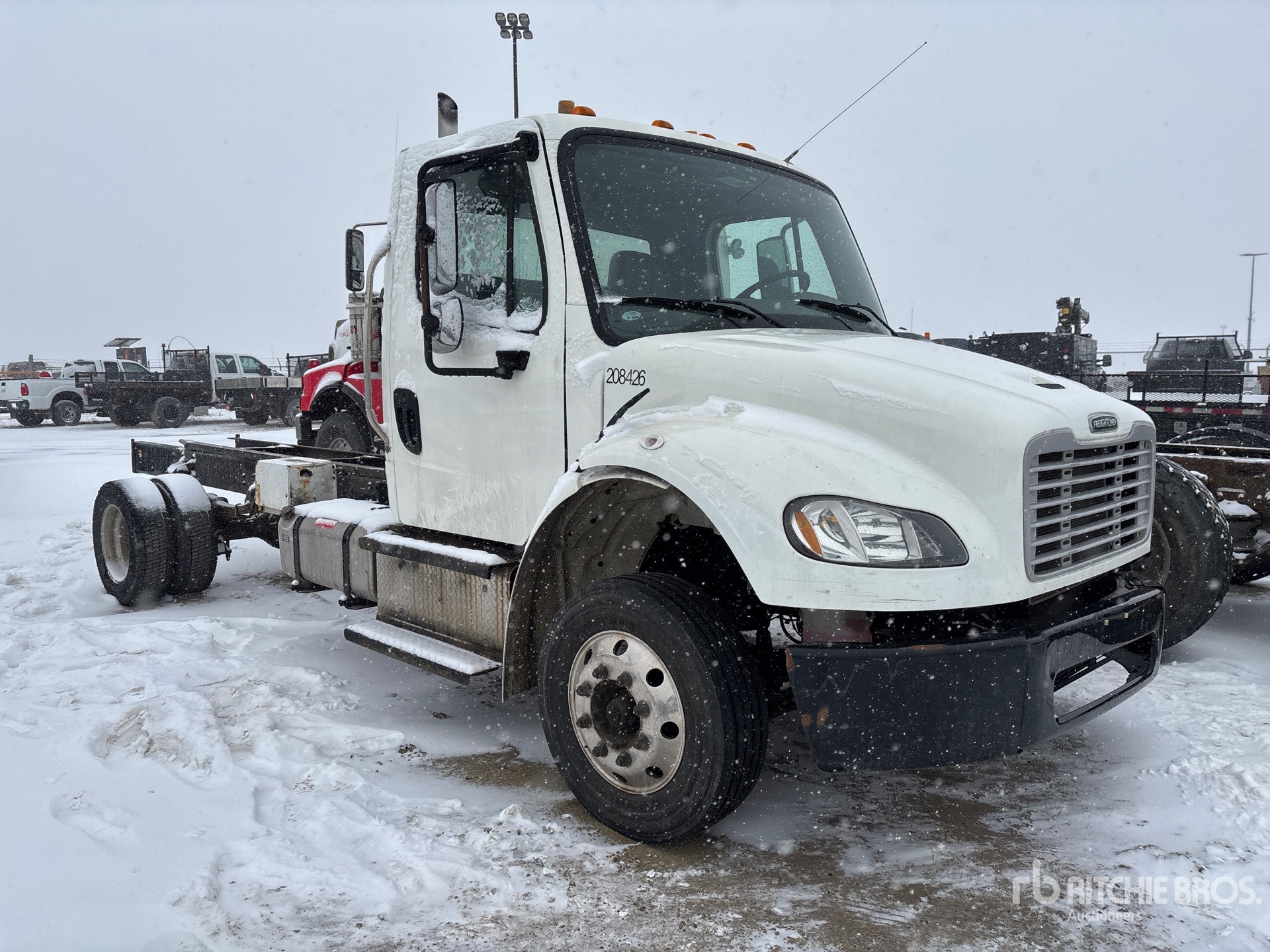 Cummins B6.7 6 Cylinder 6.7 L Diesel 220 hp Engine, 9880 lb Front Axle, 17500 lb Rears, Detroit DA-RS-17.5-2 Drive Axles, 4.56:1 Axle Ratio, 26000 lb GVWR, Aluminum Outer Wheels, 245/70R19.5, Spring Suspension, 185 in Wheelbase, 120 in Cab to Axle, 190 in Cab to End of Frame