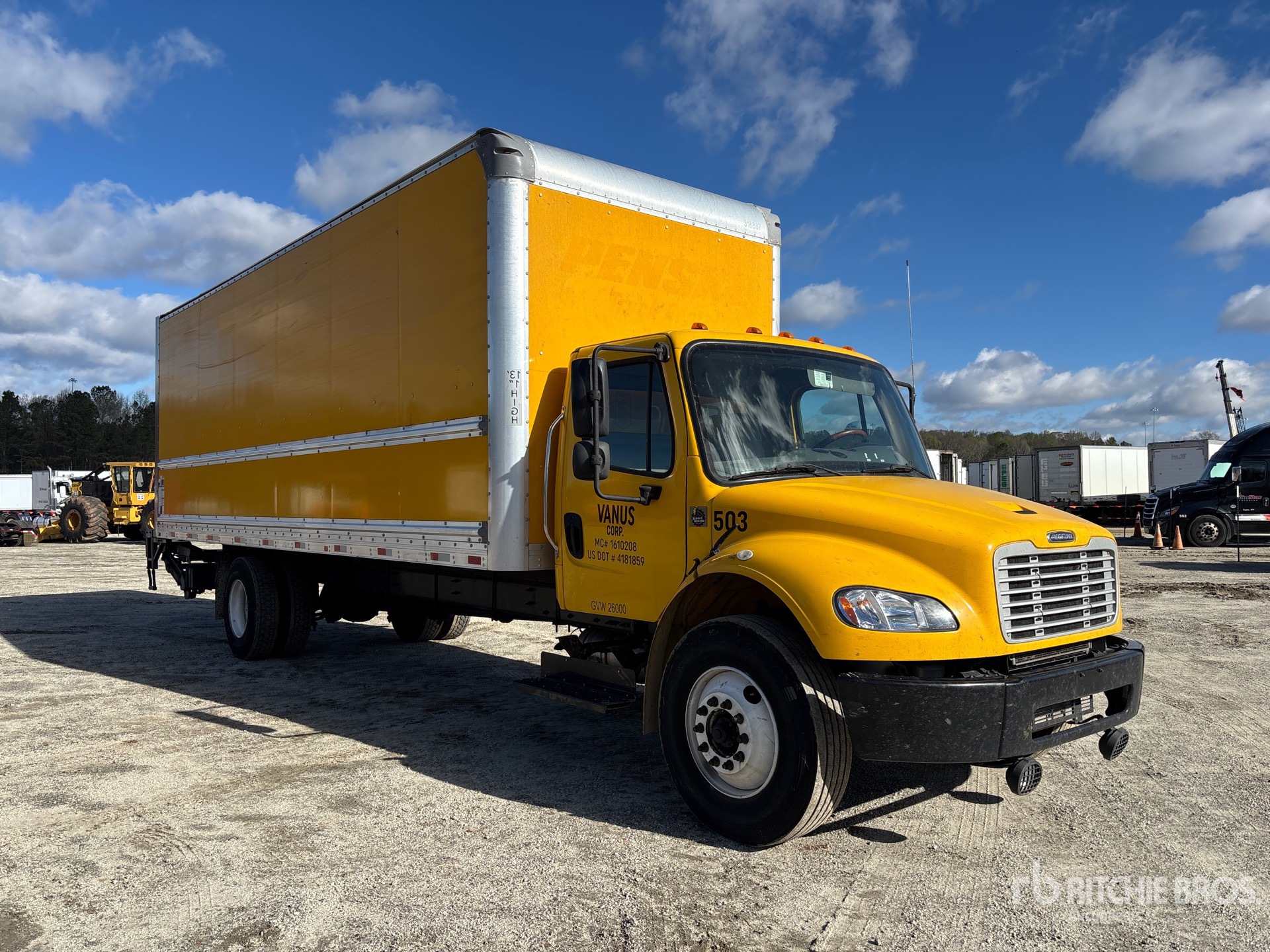 Located in Lane 3 Spot 32, Cummins B6.7 6 Cylinder 6.7 L Diesel 220 hp Engine, 2018 US EPA Label, Requires Diesel Exhaust Fluid, 8635.6 Engine hrs, Eaton Fuller EDCO-6F107A Automatic Transmission, 10000 lb Front Axle, 19000 lb Rears, Detroit DA-RS-19.0-4 Drive Axles, 5.56:1 Axle Ratio, 26000 lb GVWR, 11R22.5, Airliner Air Ride Suspension, 270 in Wheelbase, Supreme 26 ft x 102 in Wide x 103 in High Body, Walk-Up Ramp, Liftgate