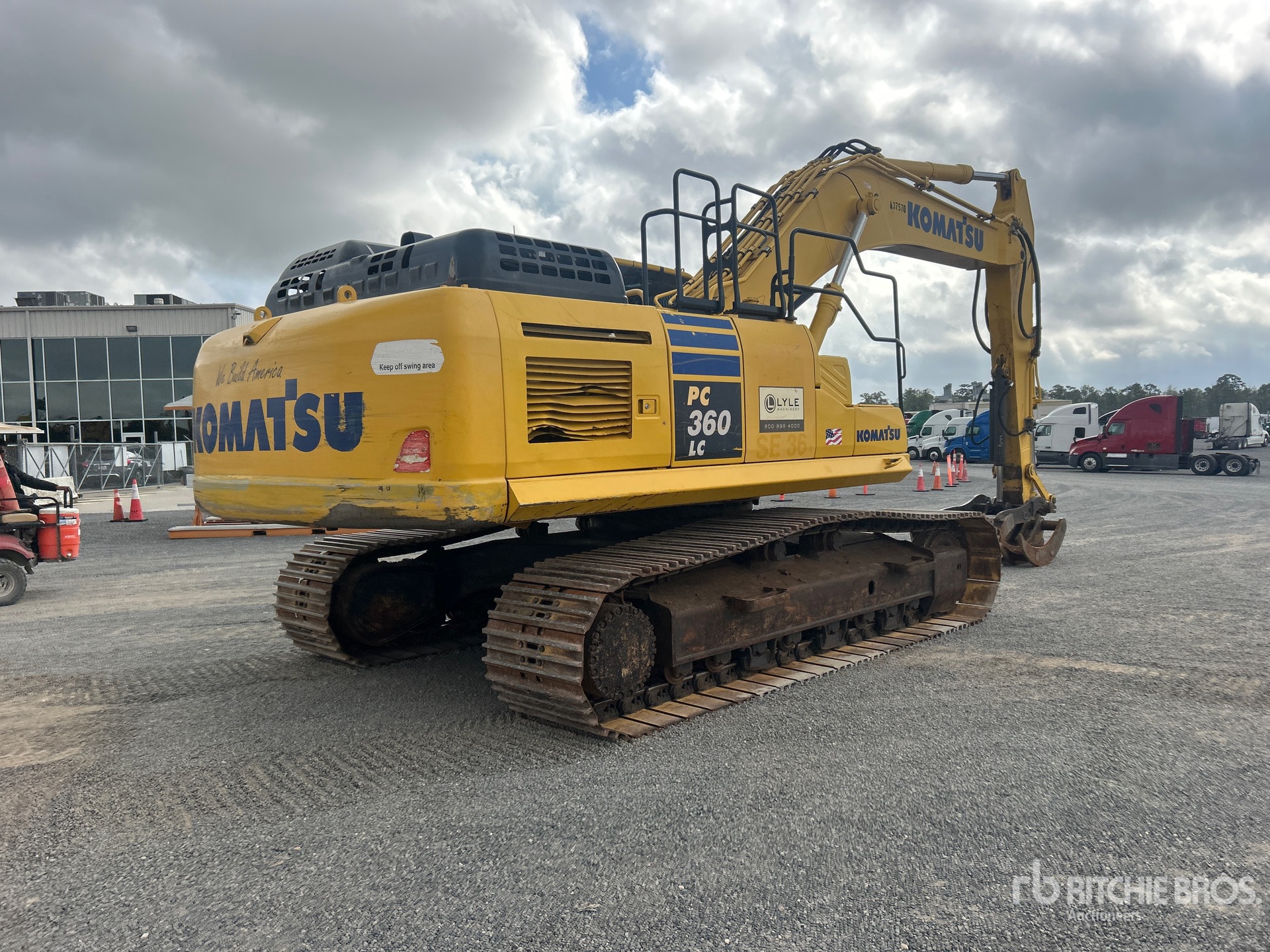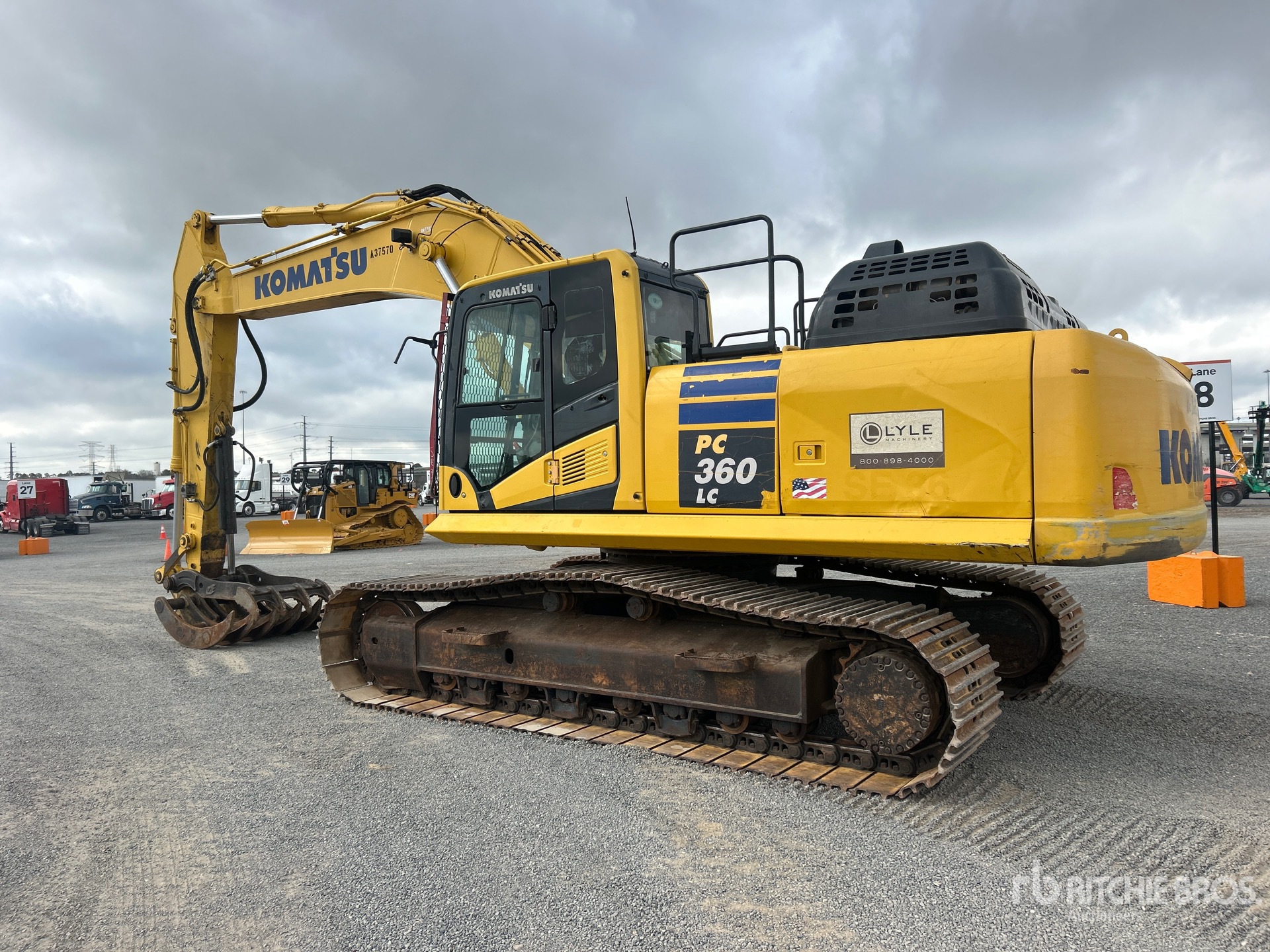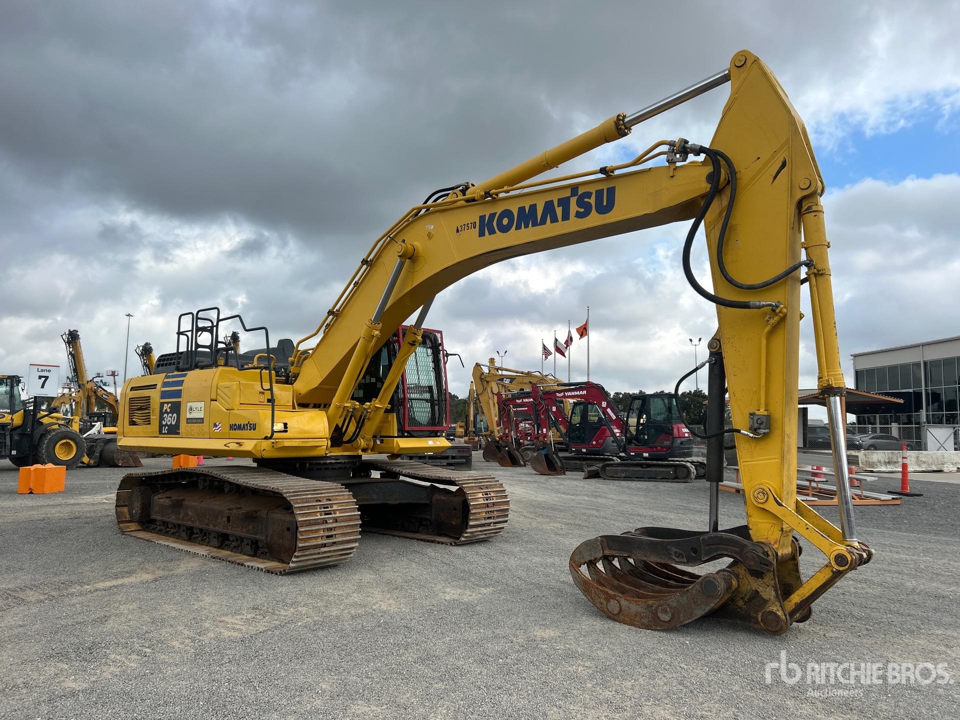Located in Lane 2 Spot 4, Air Conditioner, Straight Travel Pedal, Control Pattern Changer, Cab Screens, 2019 US EPA Label, 10 ft 6 in Stick, Auxiliary Hydraulic Plumbing, Stick Check Valve, 32 in Triple Grouser Track Shoes, 54 in Grapple Bucket, Hydraulic Thumb