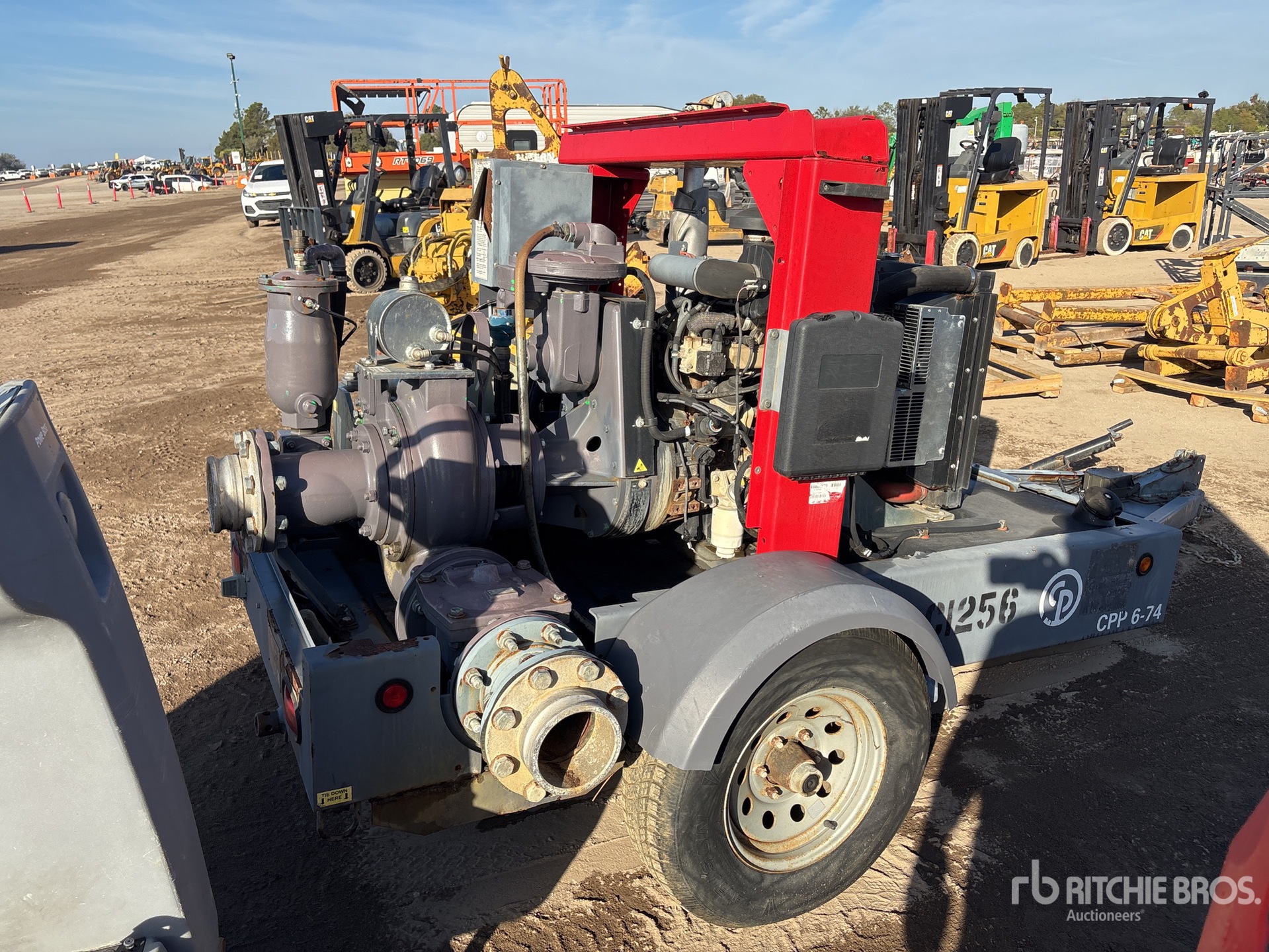 6 in Intake, 6 in Discharge, Centrifugal Water Pump, Kohler 4 Cylinder Diesel Engine, Lunette Ring Carrier Trailer, Electric Brakes