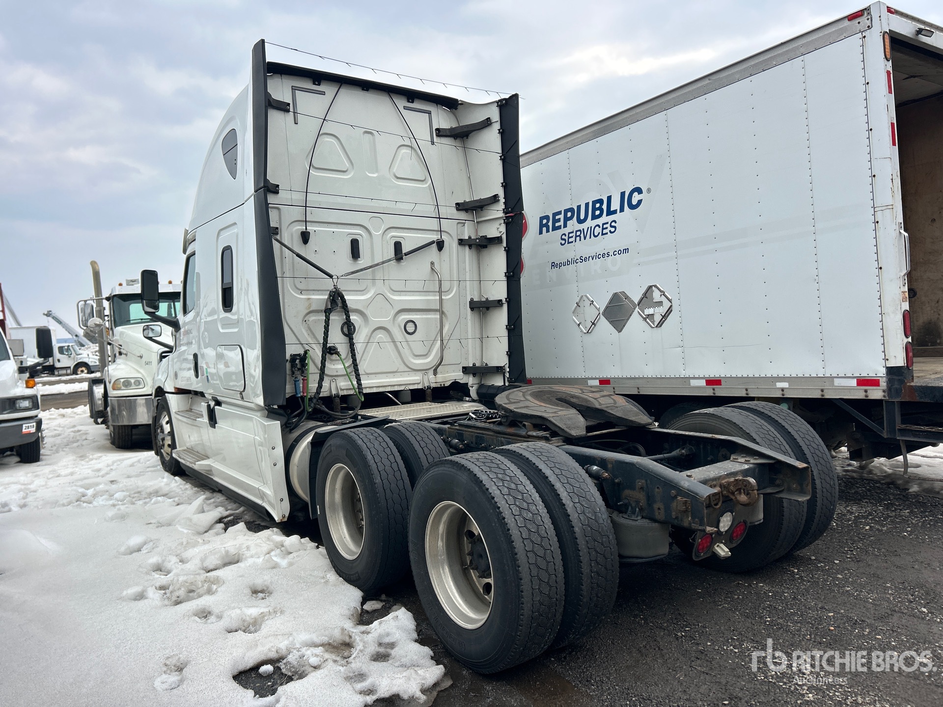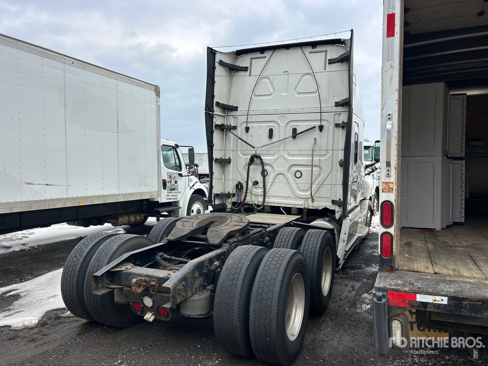 Detroit DD15 505 hp Engine, 2019 US EPA Label, Detroit DT12-1750-OH1 12-Speed Automated Transmission, 12500 lb Front Axle, 40000 lb Rears, 52500 lb GVWR, Engine Brake, 70 in High Rise Sleeper Cab, Bunk Beds, 233 in Wheelbase, Air Suspension, Aluminum Wheels, 295/75R22.5, Air Sliding 5th Wheel, Dual Fuel Tanks