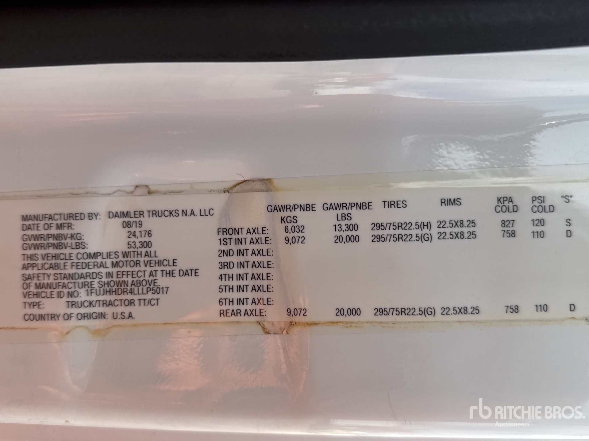 Detroit DD15 455 hp Engine, 2020 US EPA Label, 9554 Engine hrs, Detroit DT12-1650-OH1 12-Speed Automated Transmission, 13300 lb Front Axle, 40000 lb Rears, 53300 lb GVWR, 60 in Sleeper Cab, 235 in Wheelbase, Air Suspension, 295/75R22.5, Air Sliding 5th Wheel