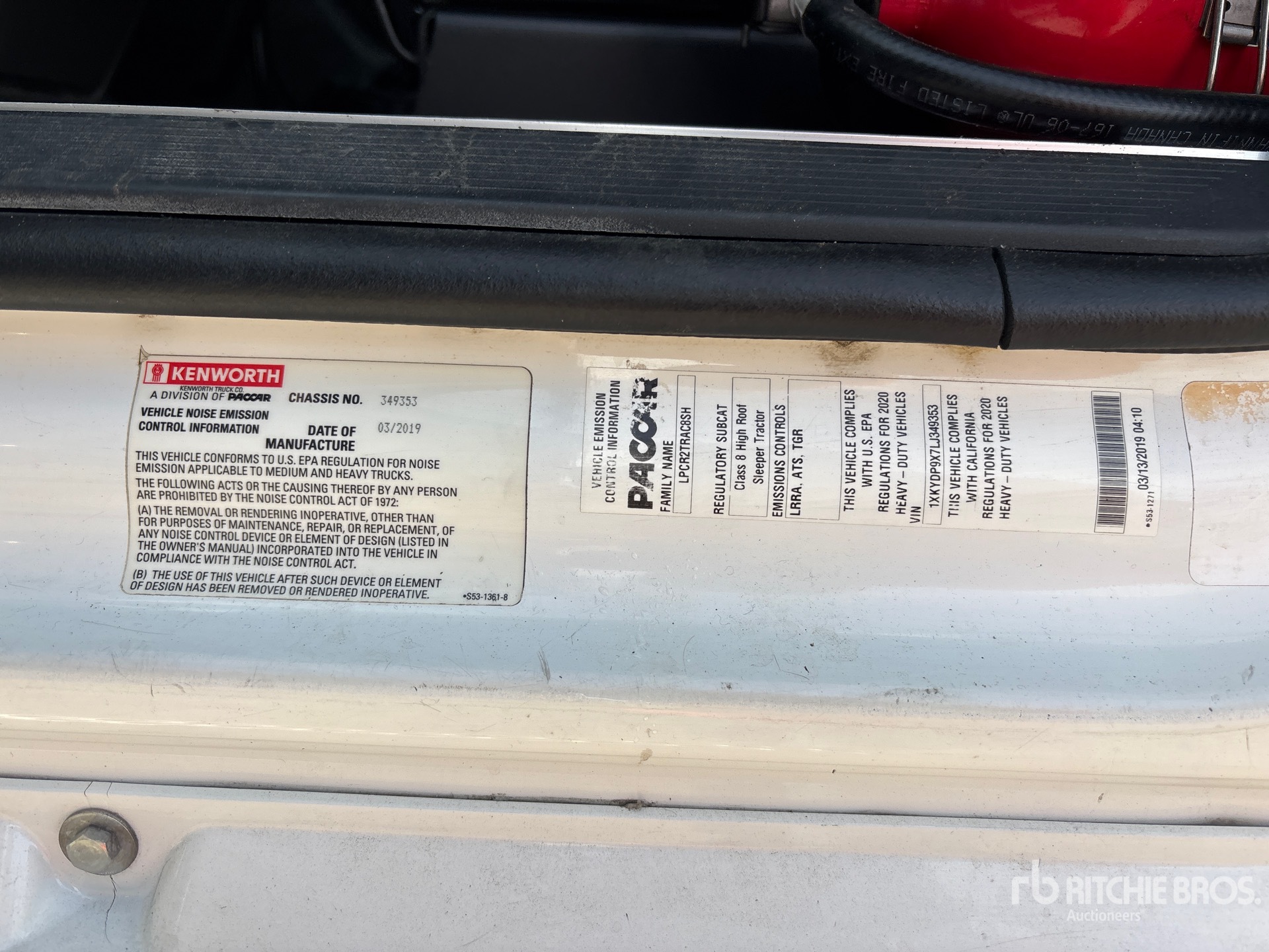 Paccar MX-13 455 hp Engine, 2019 US EPA Label, 16735 Engine hrs, Paccar PO16F112C Automated Transmission, 13200 lb Front Axle, 40000 lb Rears, 53200 lb GVWR, Engine Brake, 75 in High Rise Sleeper Cab, Bunk Beds, 230 in Wheelbase, Air Suspension, Aluminum Outer Wheels, 275/80R22.5 Front Tires, 295/75R22.5 Rear Tires, Air Sliding 5th Wheel, Dual Fuel Tanks