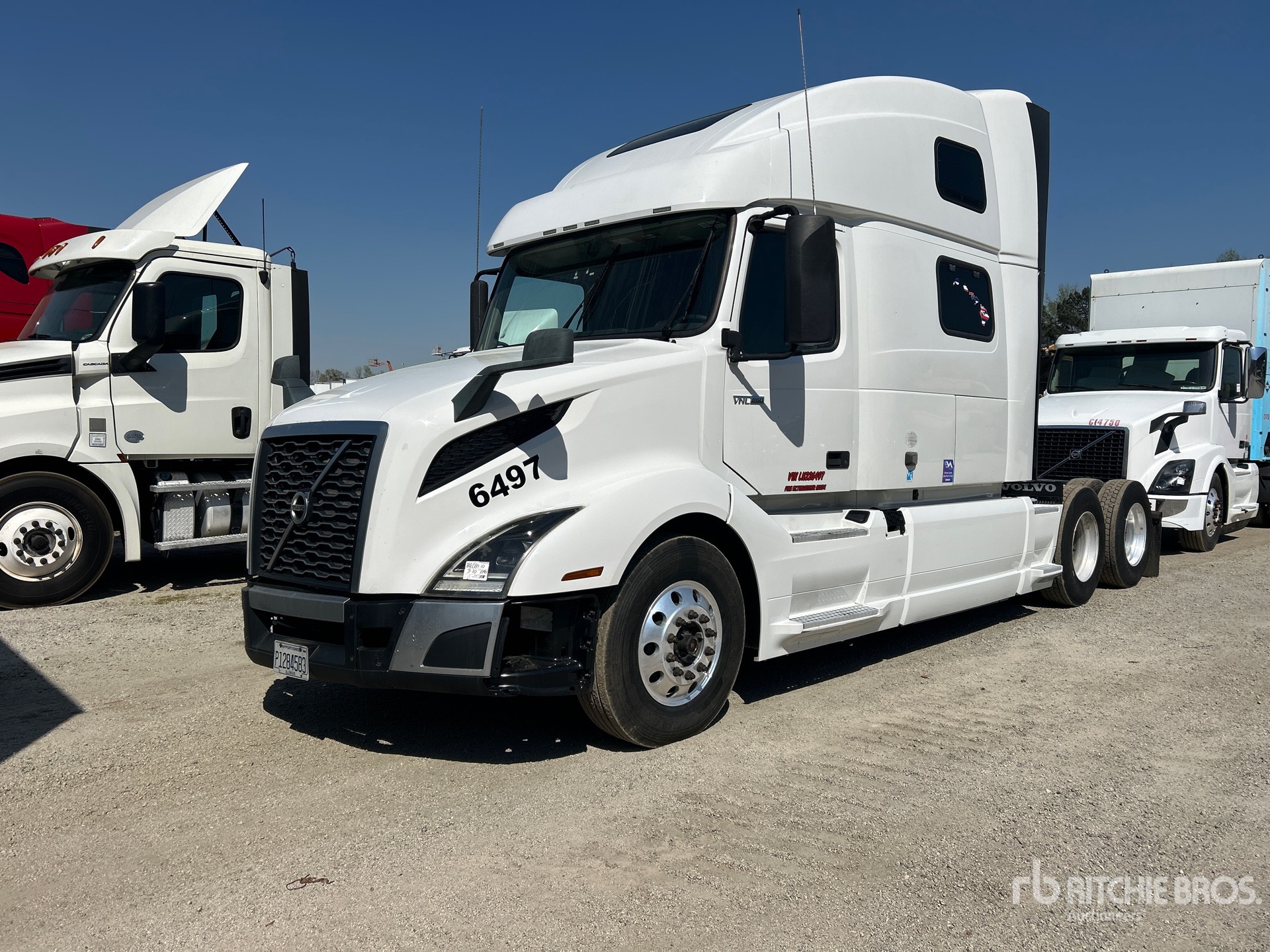 Volvo D13M-455 455 hp Engine, 2019 US EPA Label, 32513.3 Engine hrs, Volvo AT2612F 12-Speed Automated Transmission, 12350 lb Front Axle, 38000 lb Rears, 50350 lb GVWR, Engine Brake, 77 in High Rise Sleeper Cab, Bunk Beds, 223 in Wheelbase, Air Suspension, Aluminum Outer Wheels, 295/75R22.5, Air Sliding 5th Wheel, Dual Fuel Tanks