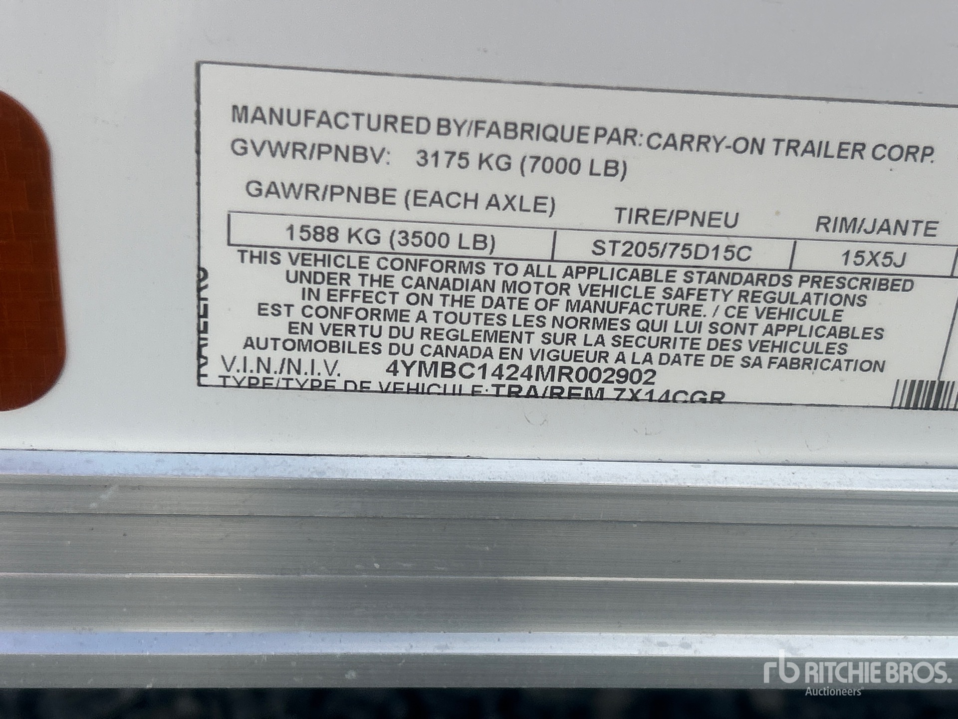 Ball Hitch, Spring Suspension, Electric Brakes, 78 in Deck Width, 102 in Overall Width, 205/75R15 Tires, 7000 lb GVWR