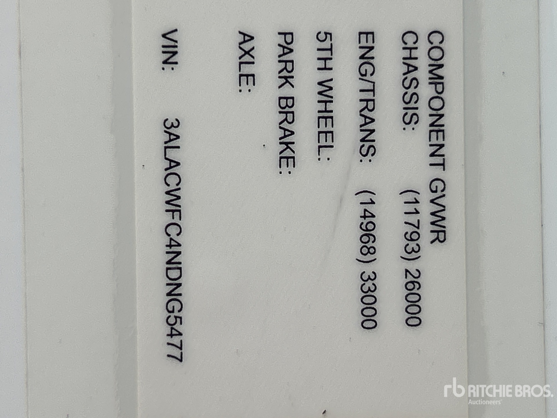 The detailed equipment information is limited in scope, and Ritchie Bros. Auctioneers has not inspected any aspects or components of the equipment other than those expressly set forth herein. Unless expressly stated, we make no representations or warranties, express or implied, concerning the equipment or its components, including without limitation any representations or warranties concerning functionality, conformity or compliance with any safety standard or requirement of any applicable authority or regulatory body, fitness for any particular purpose, or merchantability. You are strongly advised to perform your own detailed inspection of the equipment prior to bidding.