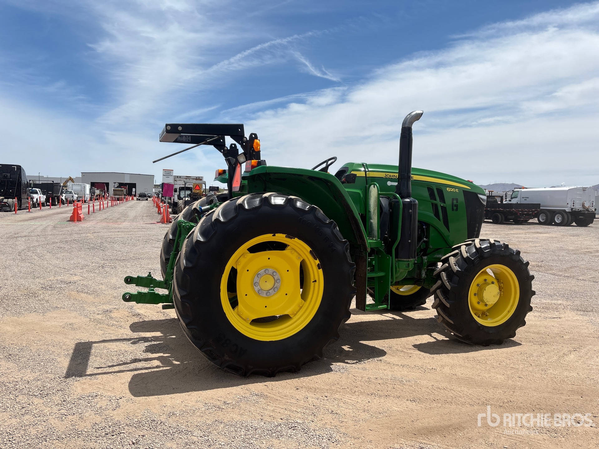 Located in Lane 5 Spot 10, 12 Forward 12 Reverse, PowrReverser, Requires Diesel Exhaust Fluid, 2 Rear Remotes, 540 PTO, 3-Point Hitch, Drawbar, 340/85R24 Front Tires, 460/85R34 Rear Tires