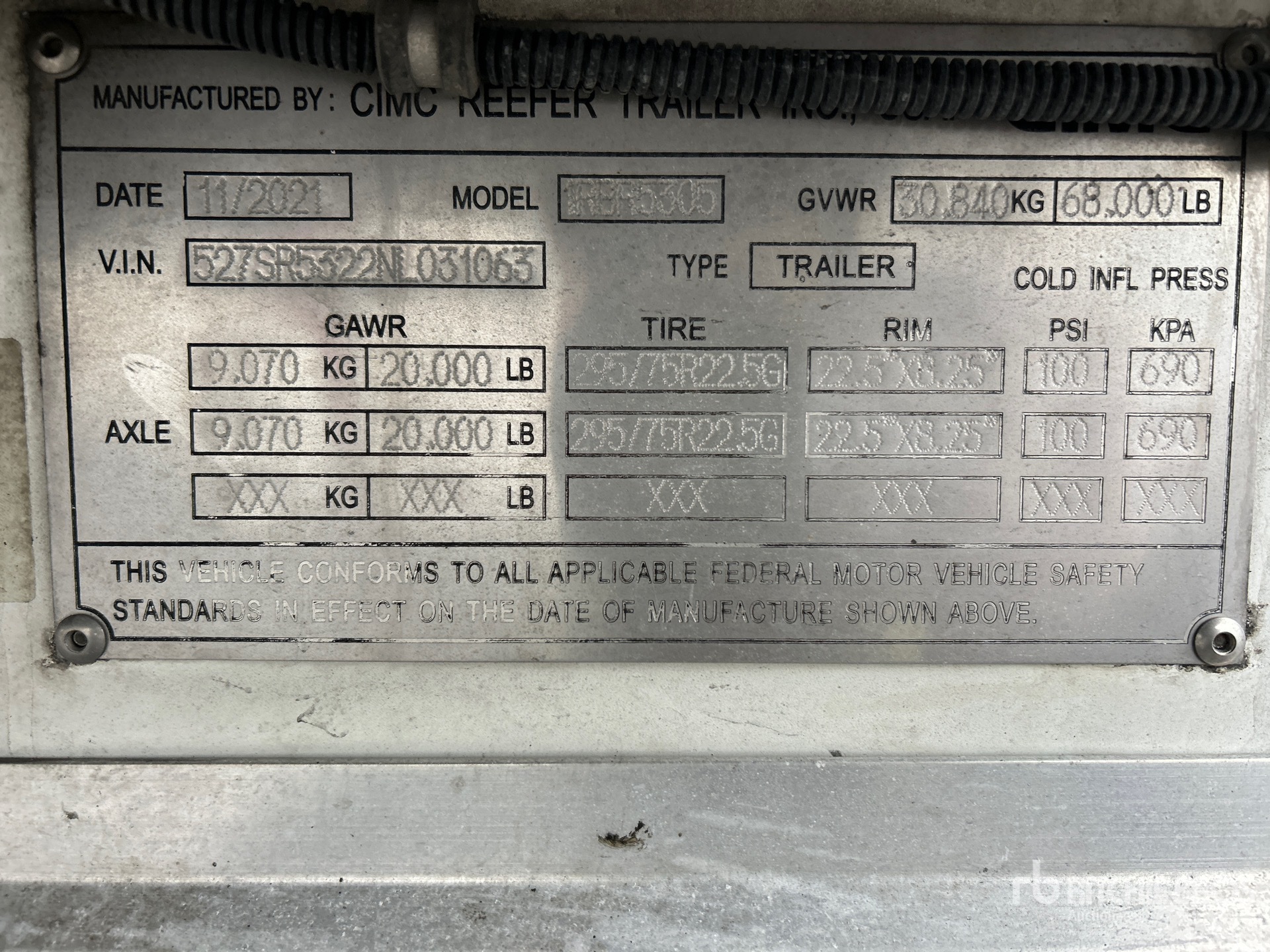 Carrier 7300X4 Refrigeration Unit, 10230 Total Hours, Air Ride Suspension, Side Skirts, Aluminum Floor, Swing Door, 295/75R22.5 Tires 68000 lb GVWR