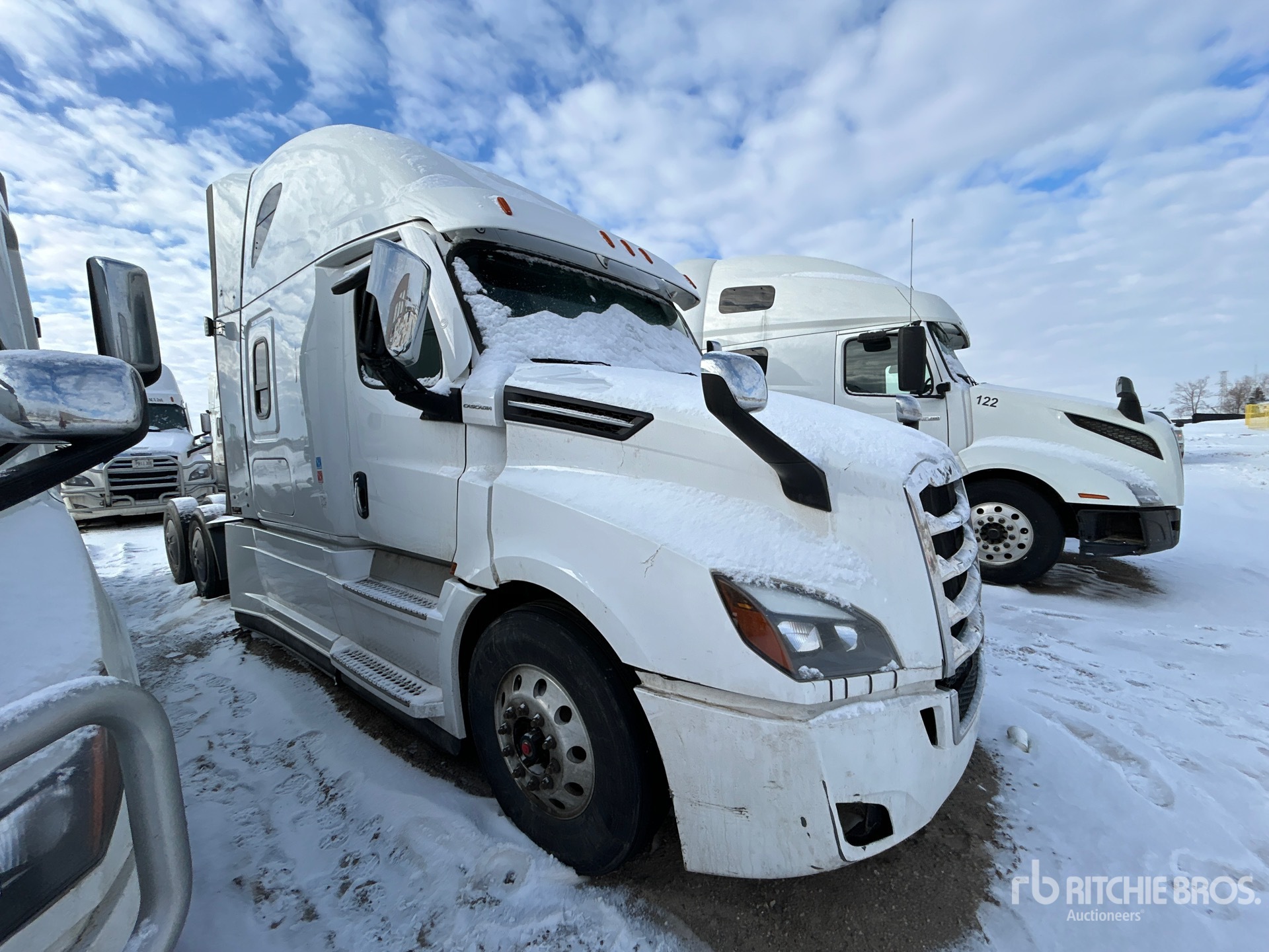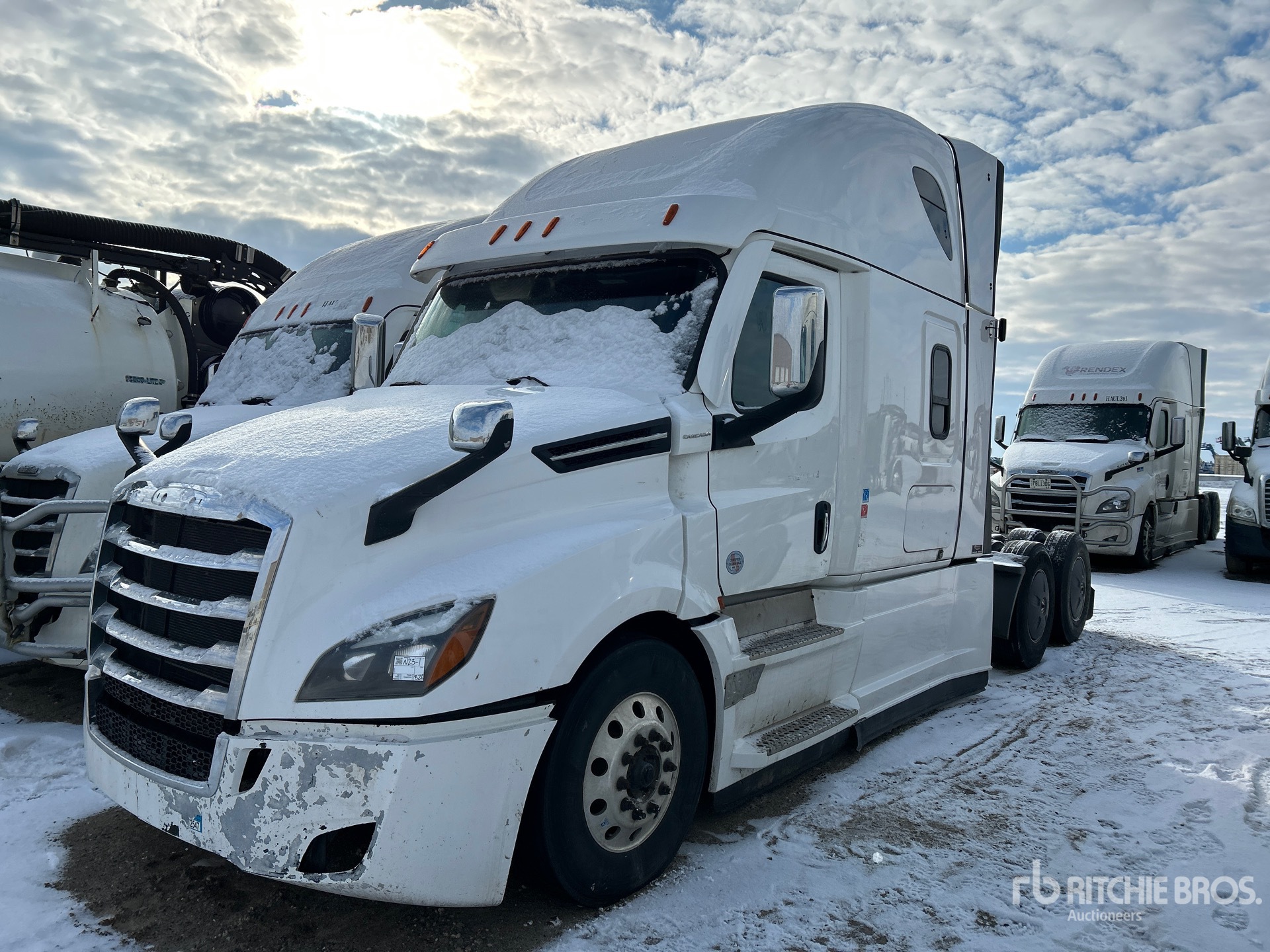 Detroit DD15 505 hp Engine, 2021 US EPA Label, Detroit DT12-1750-OHE 12-Speed Automated Transmission, 13220 lb Front Axle, 40000 lb Rears, 53220 lb GVWR, Engine Brake, Double Differential Locks, 70 in High Rise Sleeper Cab, Bunk Beds, 233 in Wheelbase, Air Suspension, Aluminum Wheels, 11R22.5, Air Sliding 5th Wheel, Dual Fuel Tanks