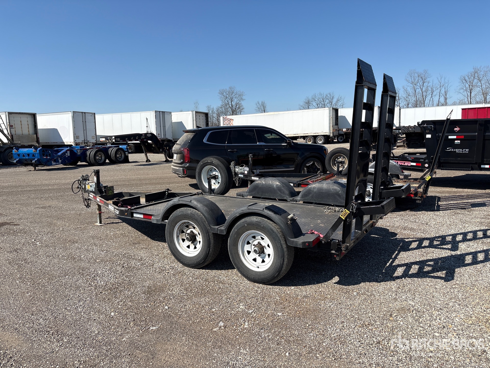 Ball Hitch, Torsion Axle, Surge Brakes, 9 ft 10 in Main Deck, 60 in Usable Deck Width, 67 in Overall Deck Width, Manual Ramps, Steel Decking, 225/75R15 Tires, 6900 lb GVWR