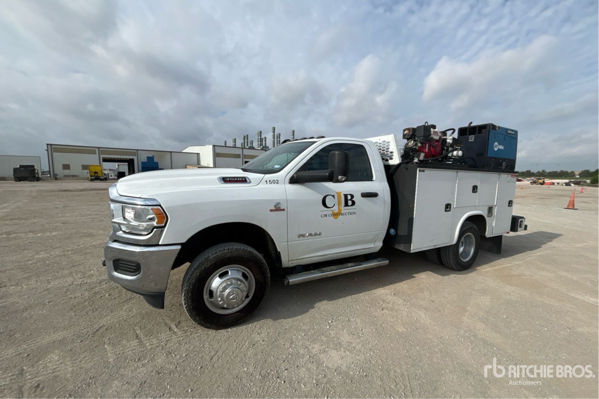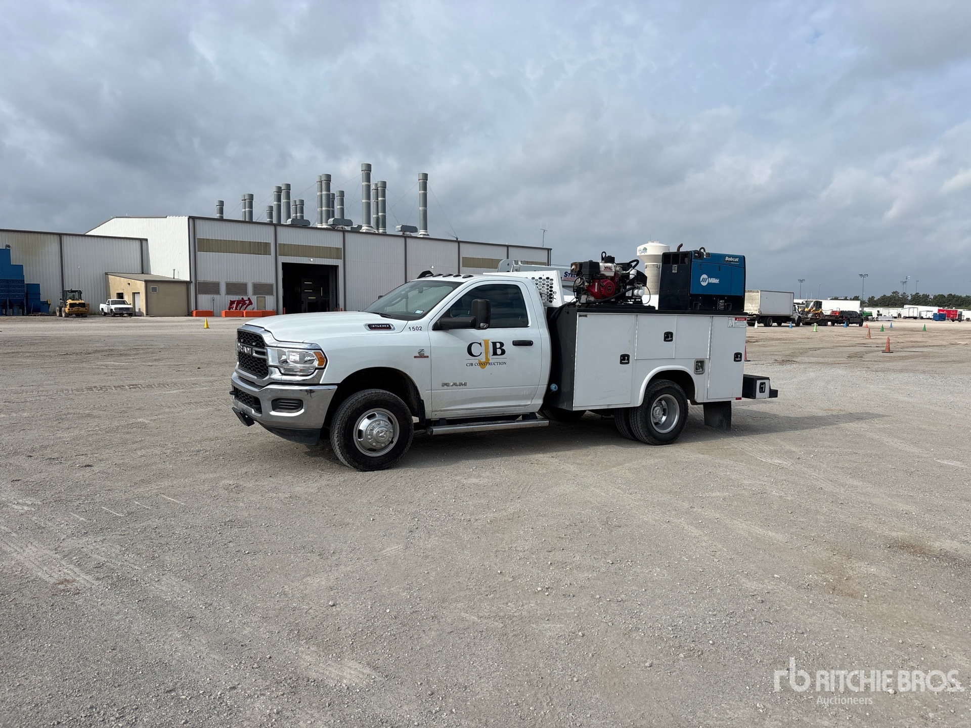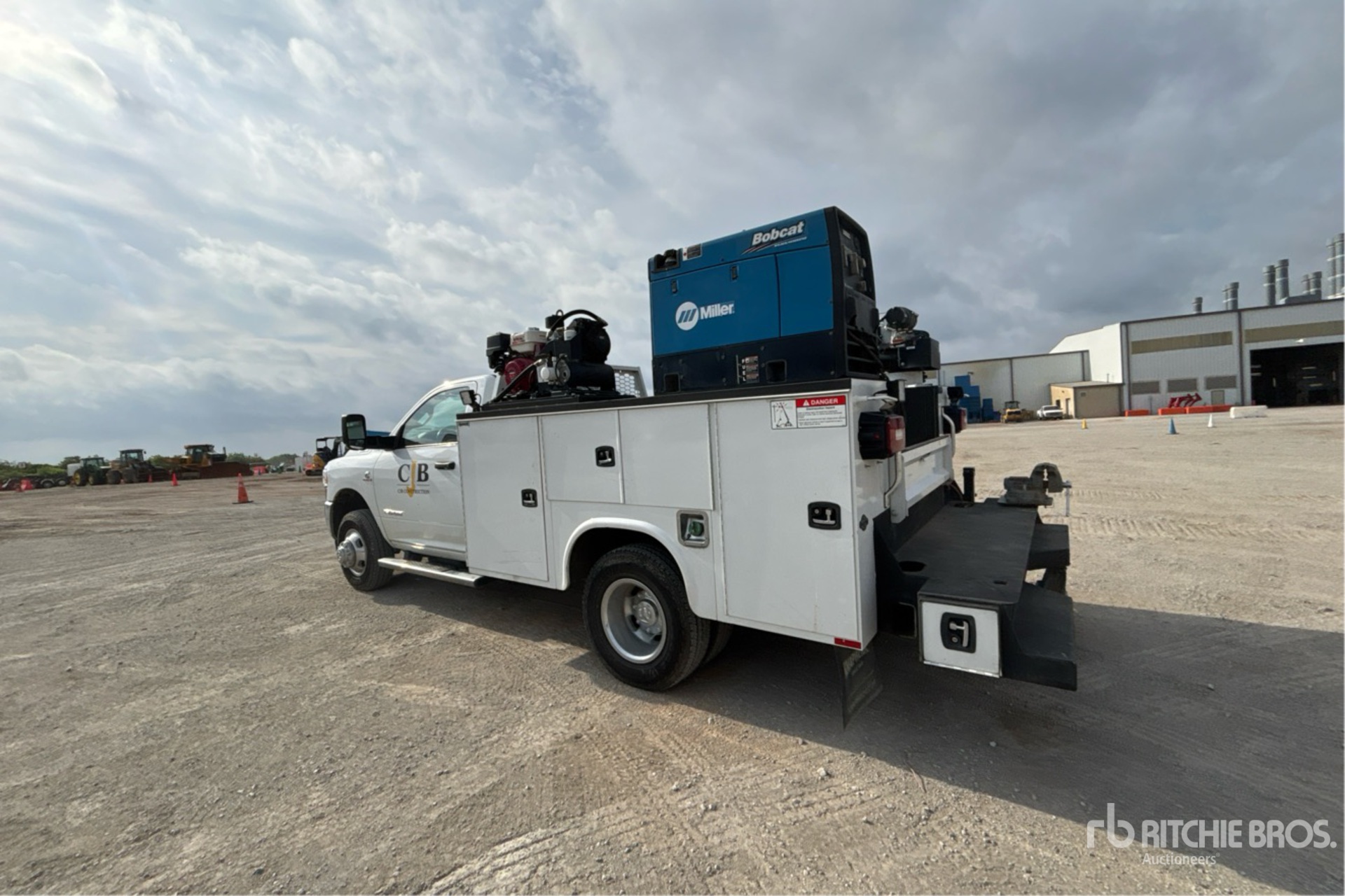 Cummins B 6.7 L Diesel 360 hp Engine, 2022 US EPA Label, Requires Diesel Exhaust Fluid, 2000 Engine hrs, Exhaust Brake, Allison Automatic Transmission, 6000 lb Front Axle, 9850 lb Rears, 14000 lb GVWR, Aluminum Wheels, 235/80R17, Spring Suspension, 144 in Wheelbase, PTO, Knapeide 11 ft Body, Manual Stabilizers, Stellar EC3200 3200 lb 3 Section Electric Crane, Wireless Remote Control, VMAC Gasoline Air Compressor, Air Hose Reel, Miller Bobcat 250 Gasoline Welder